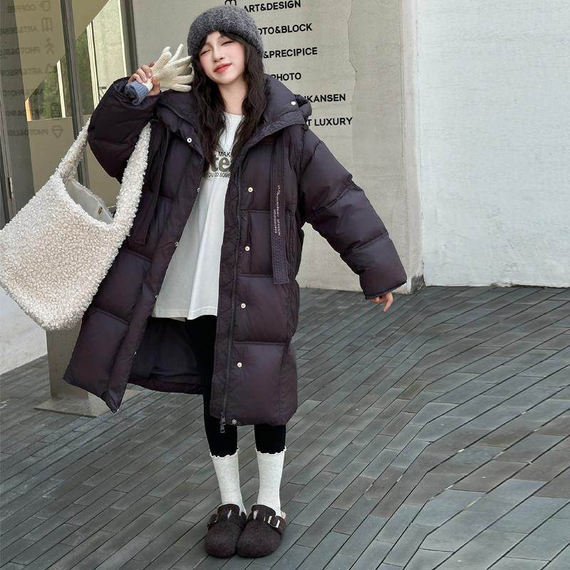 女童冬季长款过膝白鸭绒羽绒服中大童初中生时髦洋气儿童冬装外套