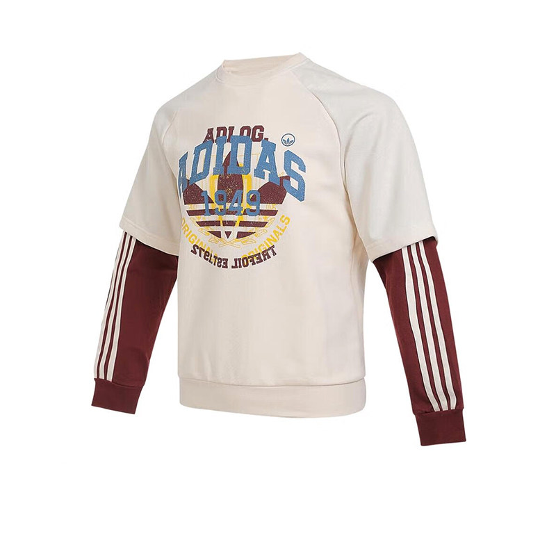 阿迪达斯童装男大童卫衣25秋儿童三叶草复古风假两件套头衫KG6622