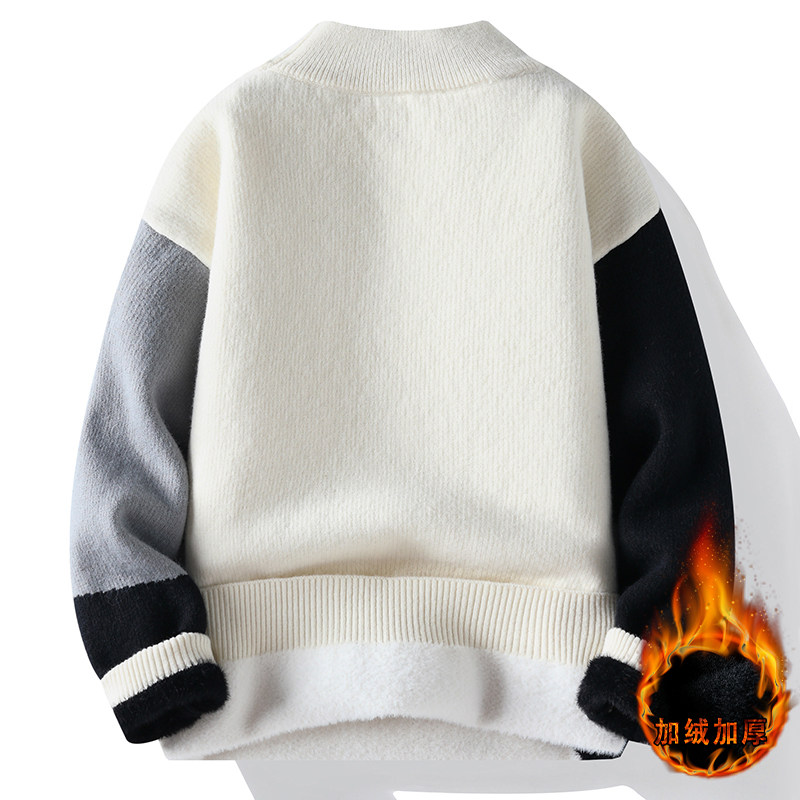 一体绒加绒加厚毛衣男秋冬季潮牌青少年初中高中学生半高领针织衫