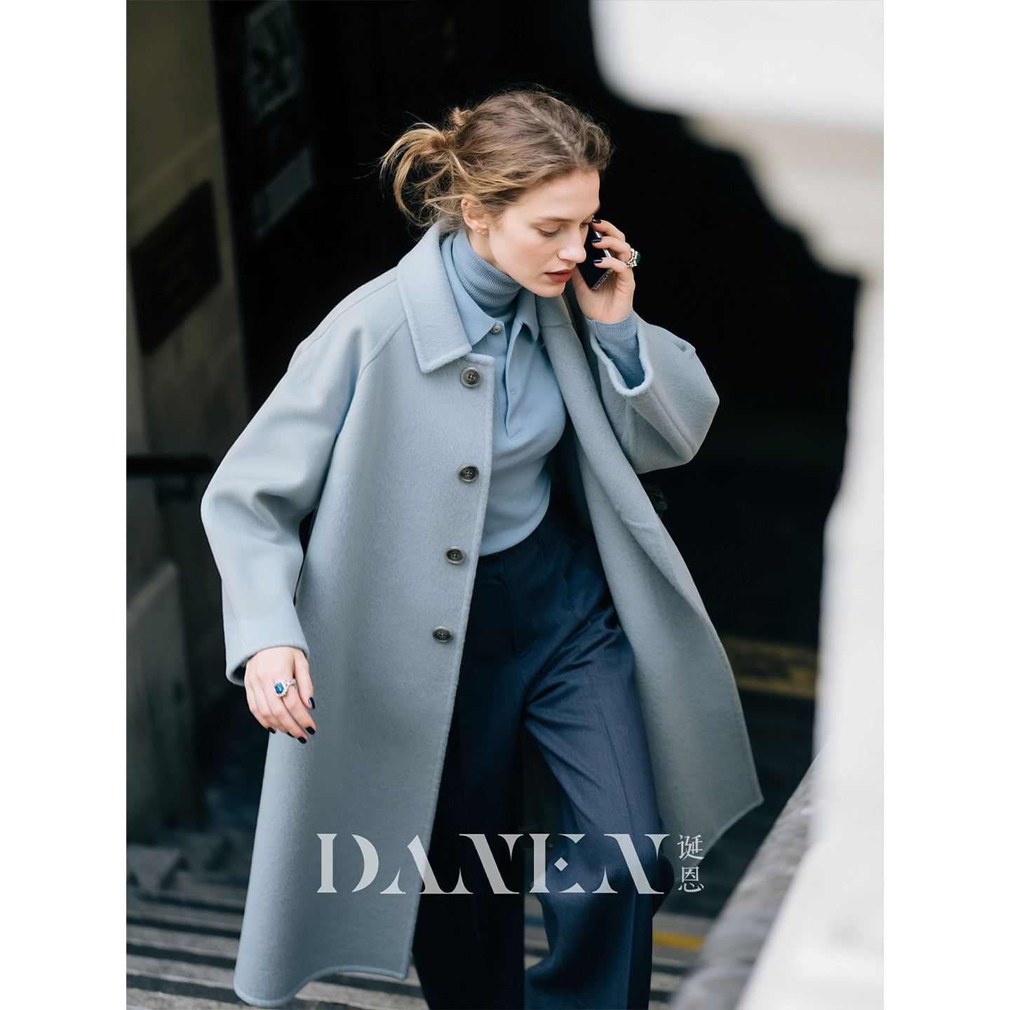雾霾蓝英伦老钱风毛呢羊毛外套女2026秋冬新款中长款气质显瘦大衣