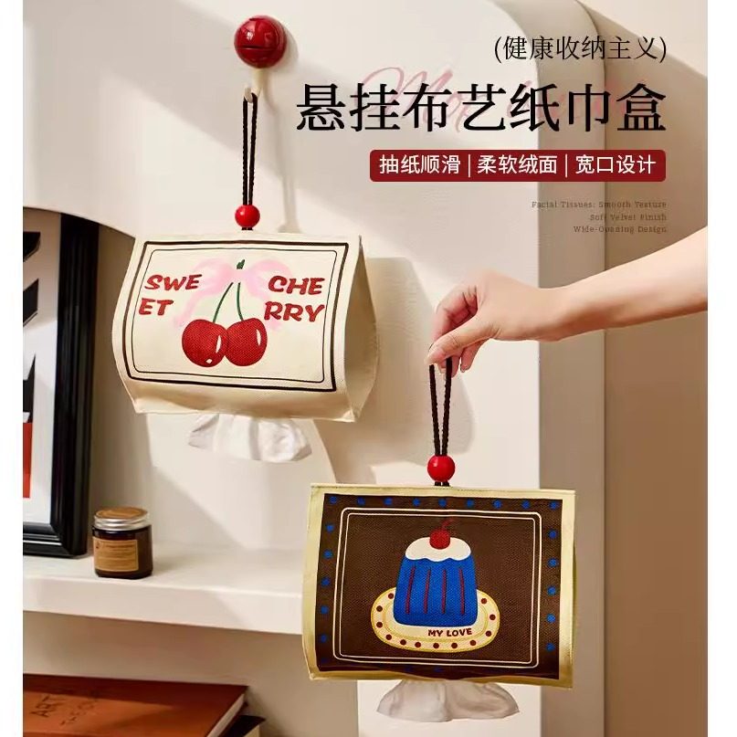 清新壁挂式纸巾布艺袋家用卫生间车载悬挂洗脸巾抽纸收纳盒收纳袋