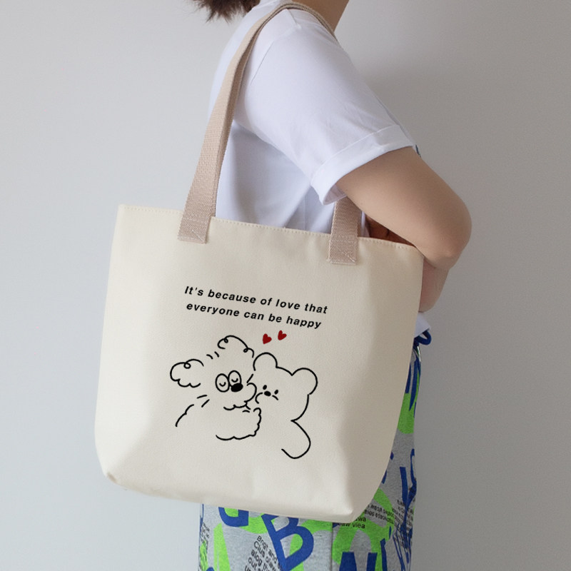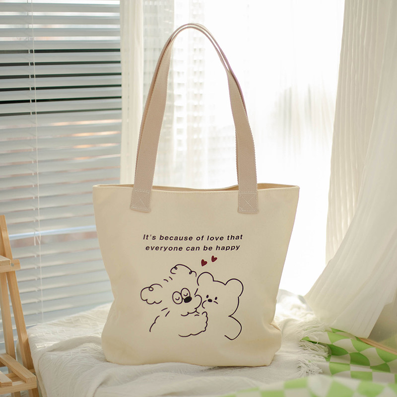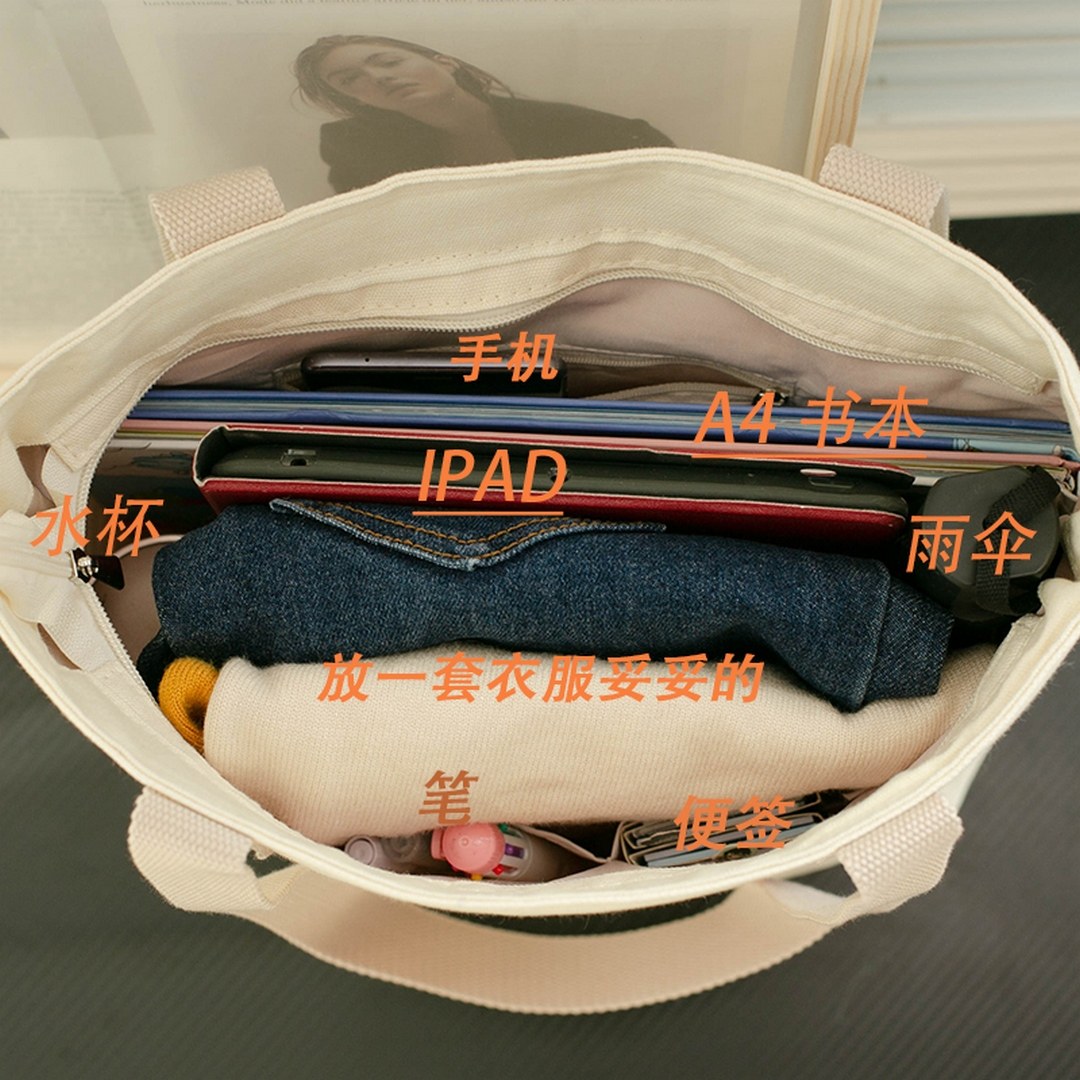 帆布包女托特包大容量旅行单肩手提布袋上班通勤可爱拉链文件布包