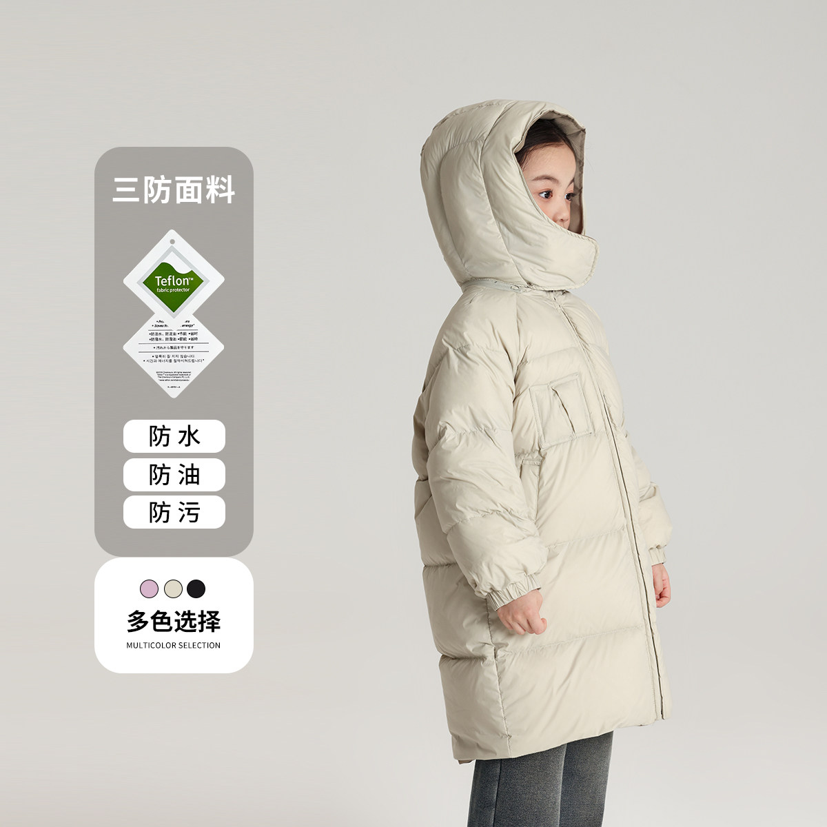 布丁哈鲁童装冬装女童2026冬季新款儿童中长款双面穿三防羽绒服