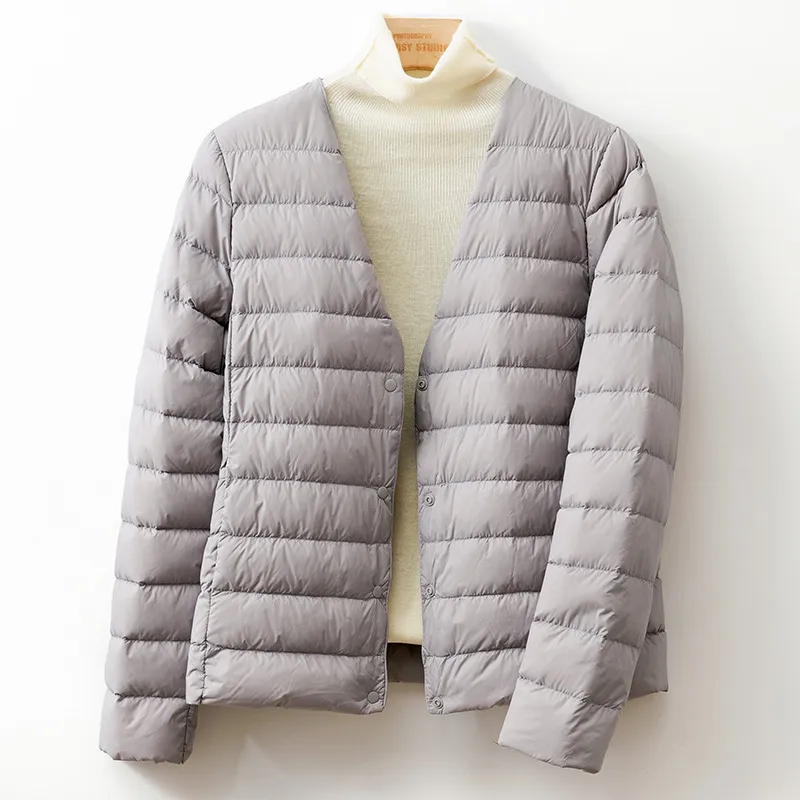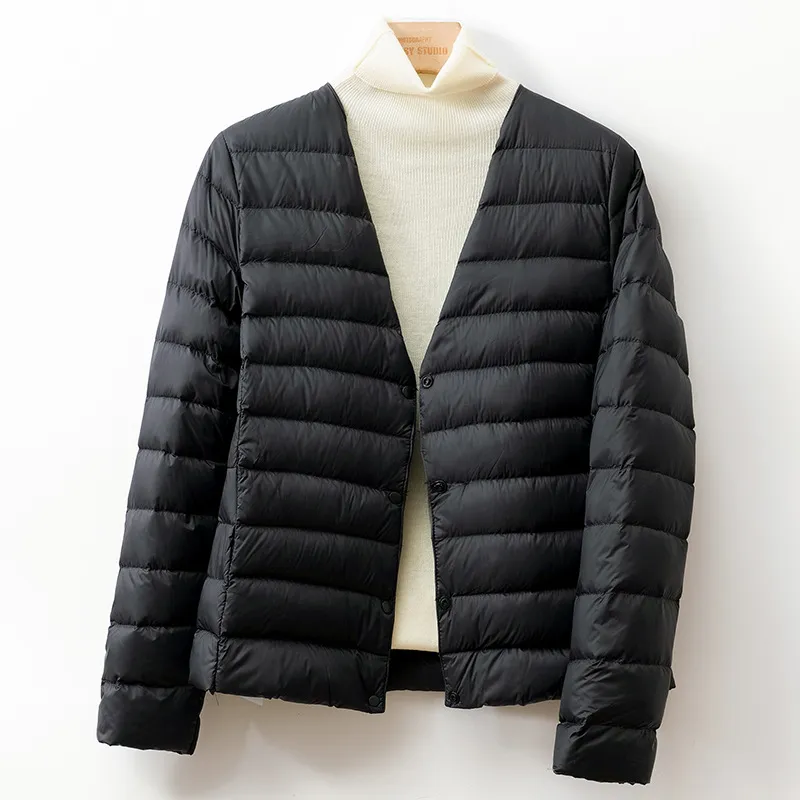 新国标90绒内胆轻薄羽绒服女款短款无领2025秋冬薄白鸭绒轻便内穿