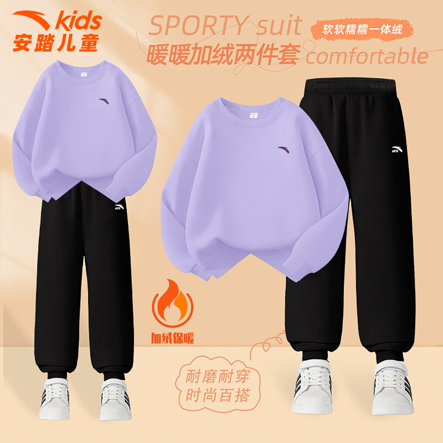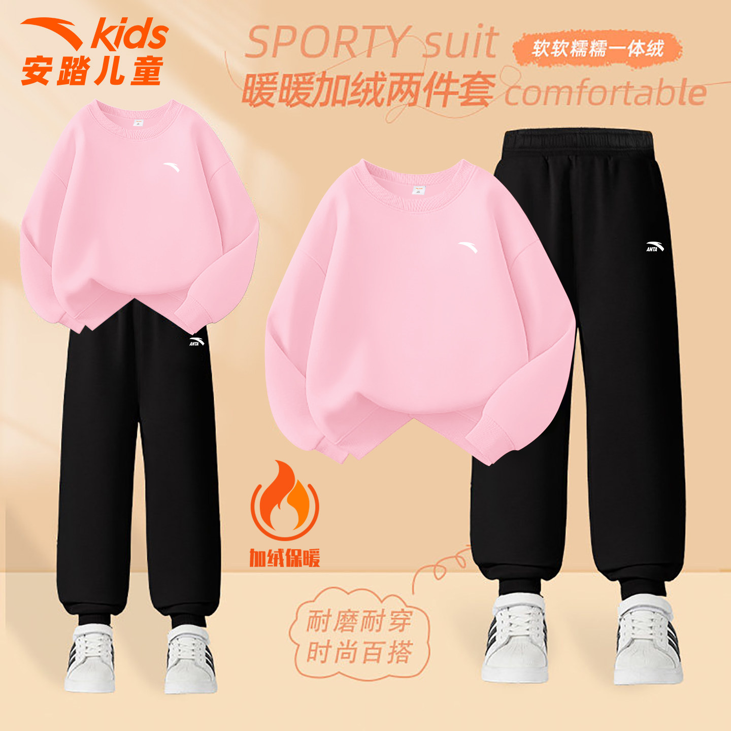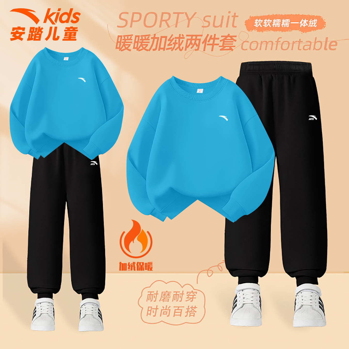 安踏儿童运动套装男童中大童加绒卫衣卫裤新年红色衣服两件套童装