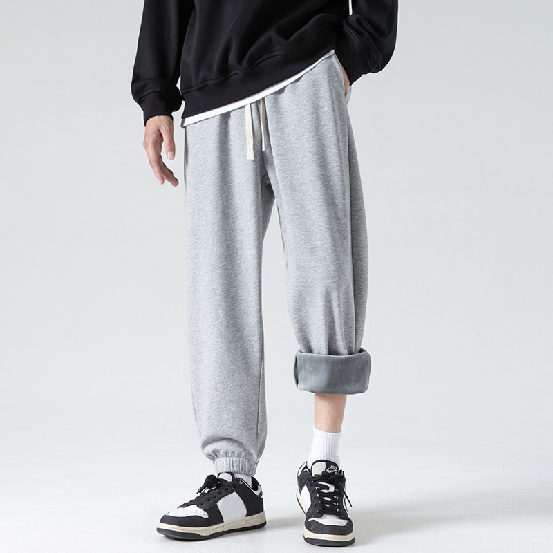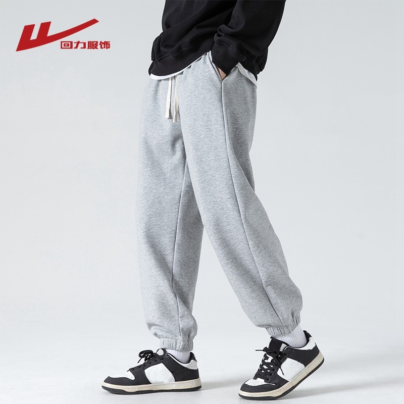 回力加绒休闲裤男款秋冬季宽松重磅束脚卫裤男士加厚工装运动裤子