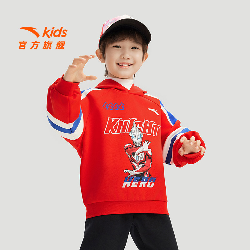 奥特曼IP|安踏儿童卫衣男童宝宝连帽套头衫2025春款小童萌趣上衣