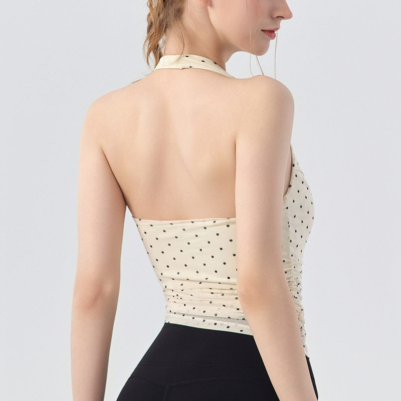 挂脖波点吊带美背瑜伽背心女外穿瑜伽服中强度防震普拉提健身文胸