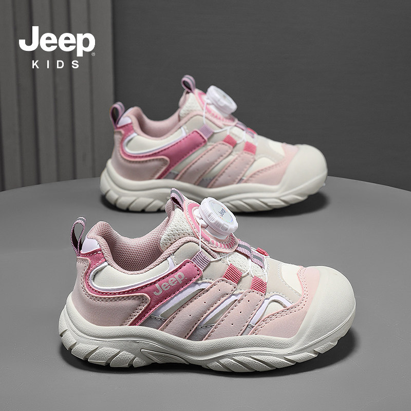 Jeep儿童轻便运动鞋春秋中大童跑步女童2026新款男童纽扣鞋子春款