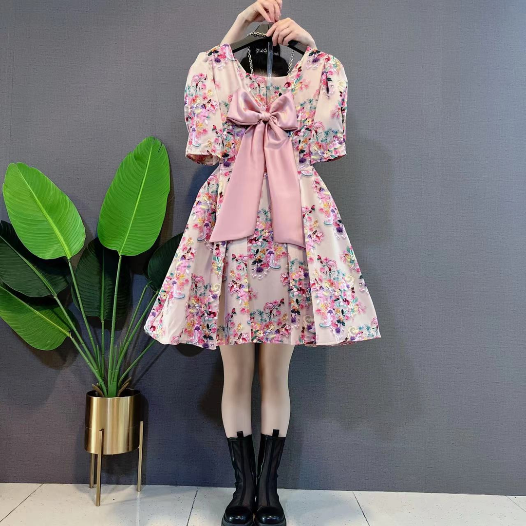 大码蝴蝶结法式气质高级感连衣裙2026新款女夏季胖mm梨型身材裙子
