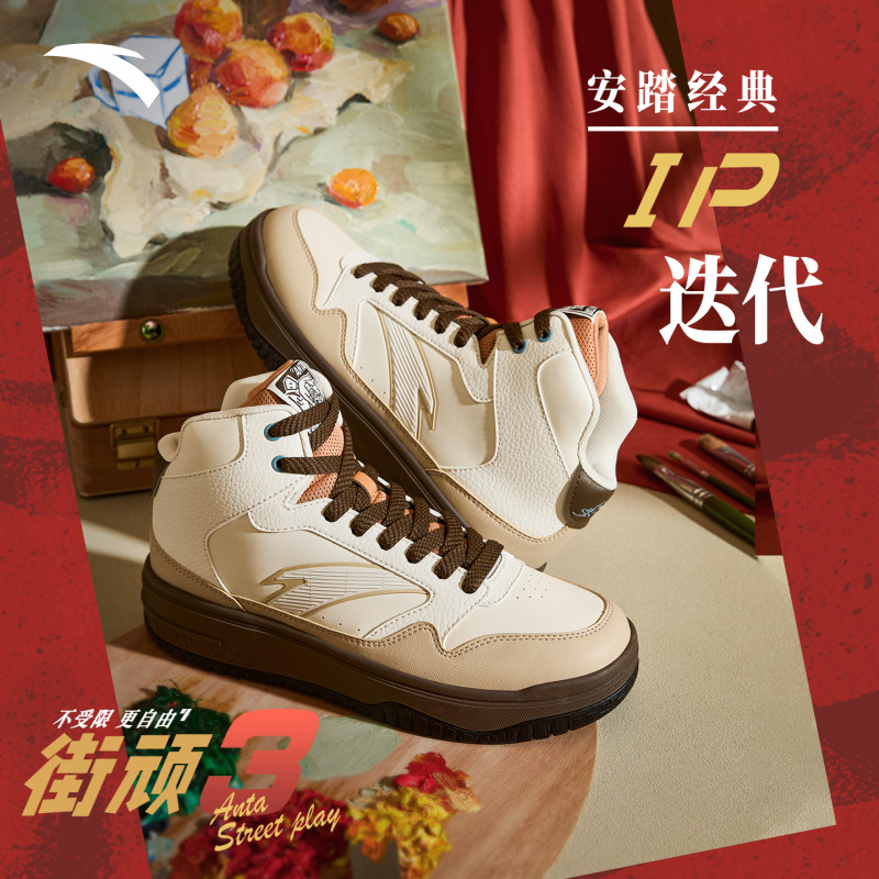 311线报网描述:安踏街顽3丨经典熊猫色高帮板鞋男