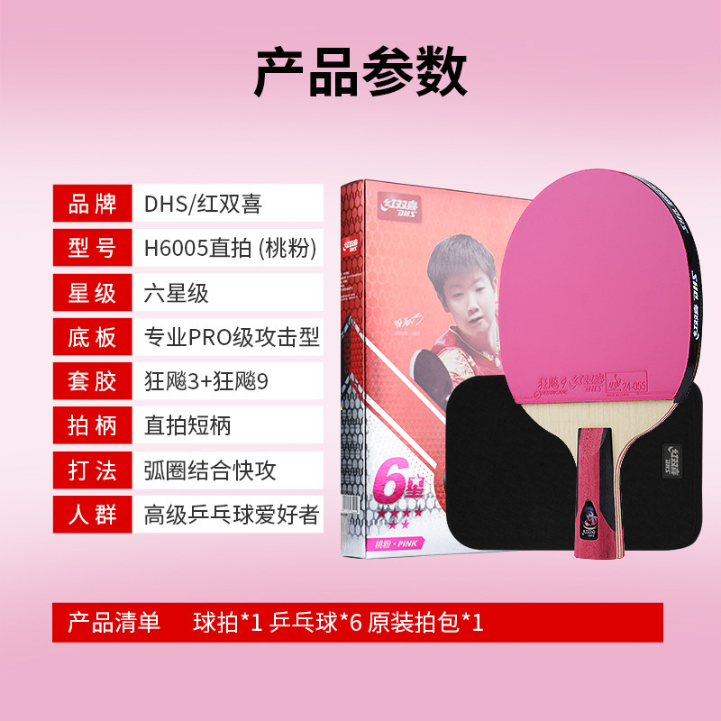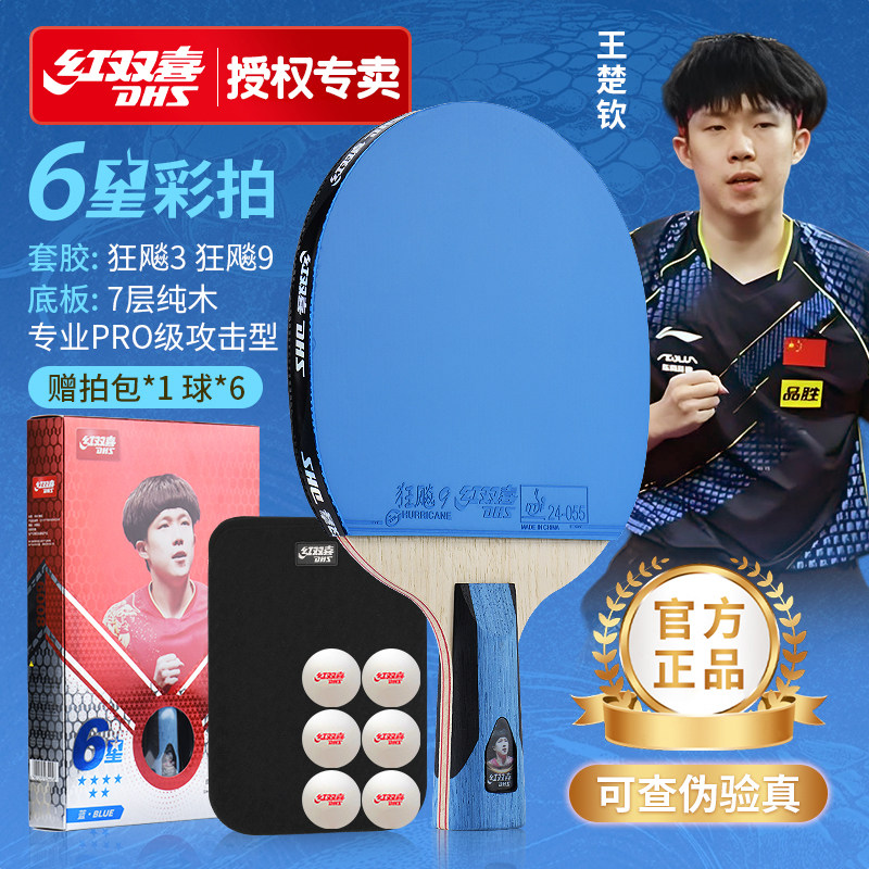 红双喜六星乒乓球拍七星专业级横直拍彩色胶皮6星兵乓球拍7星单拍