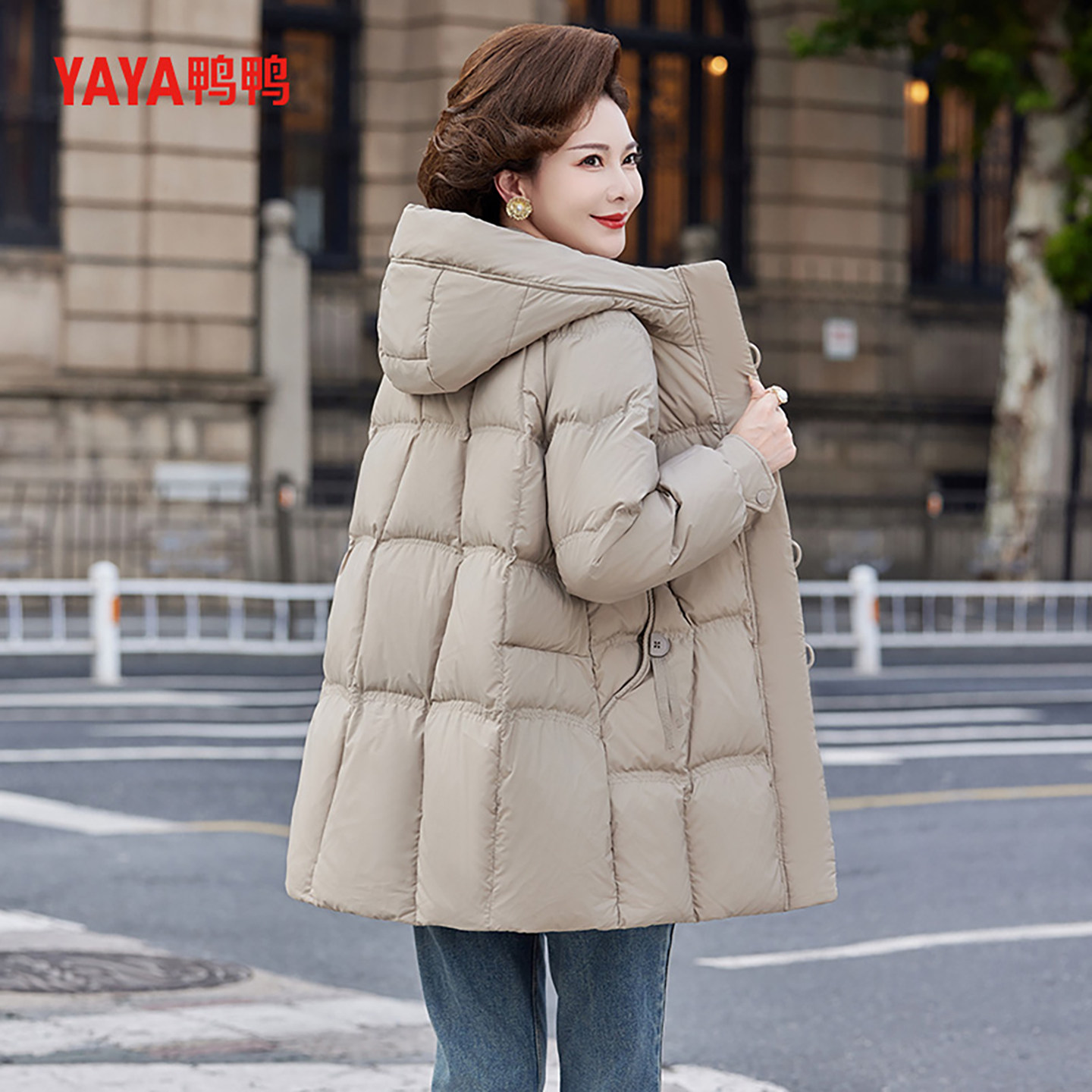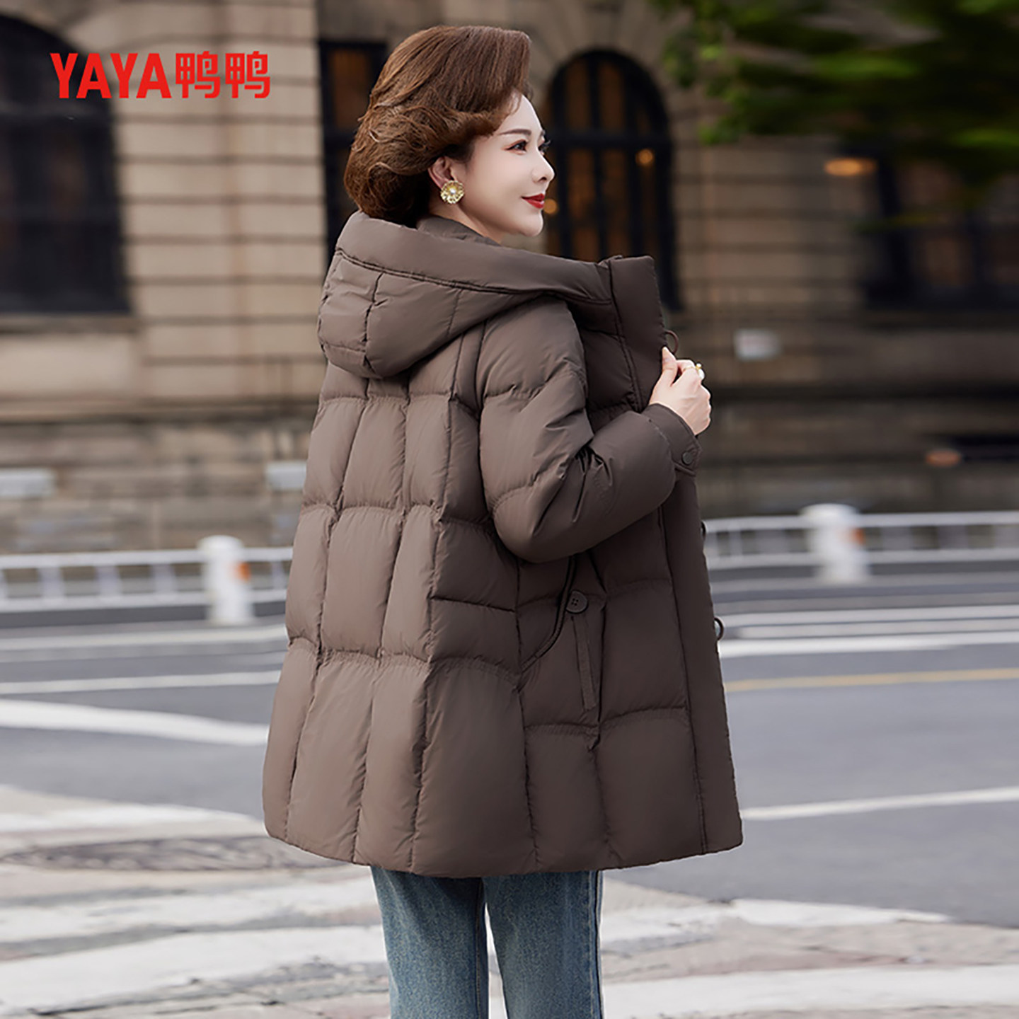 YAYA鸭鸭妈妈中长款羽绒服女2025新款连帽中年女装外套中老年冬装