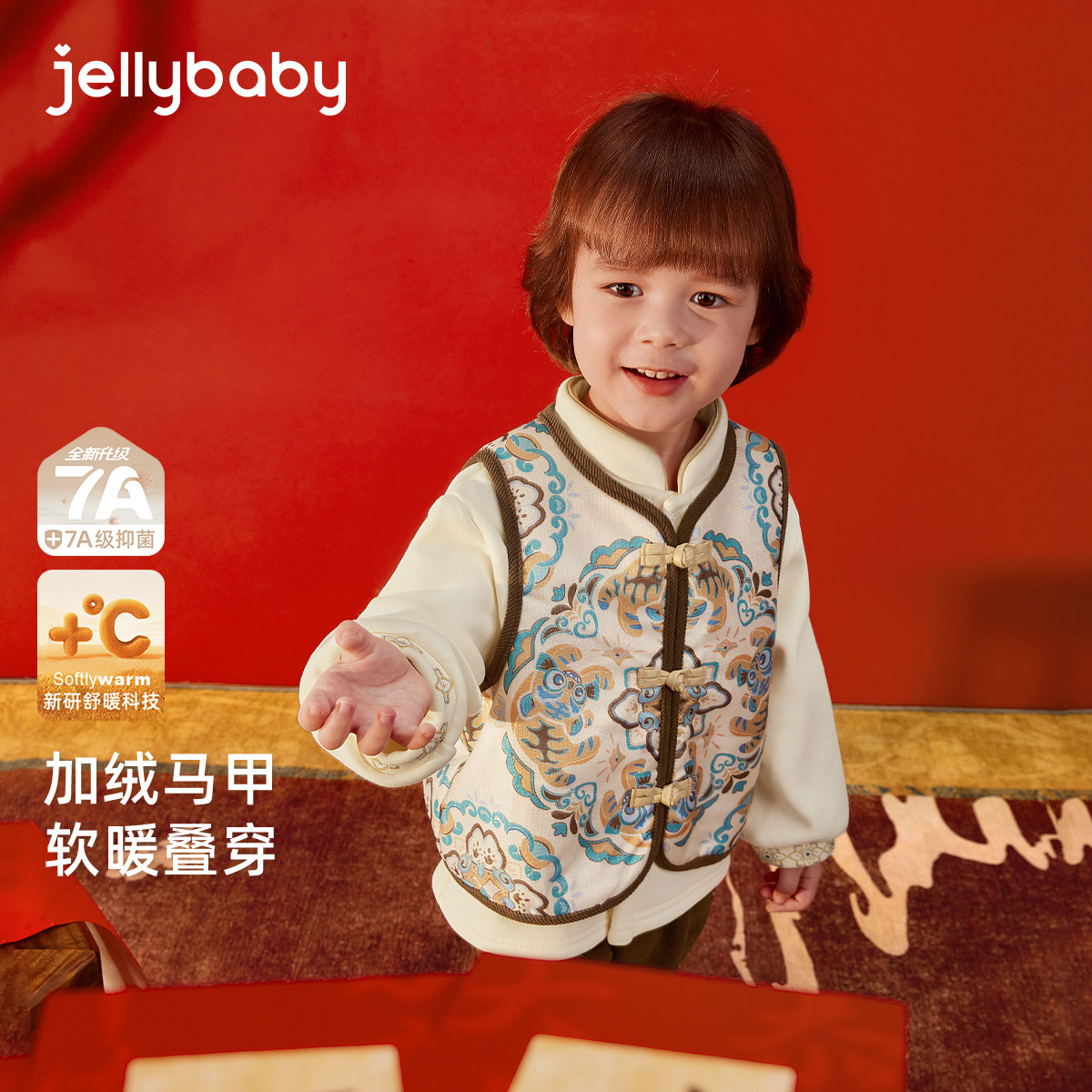 [2026/新年款]男童拜年套装新中式马甲国风唐装三件套加绒新年服
