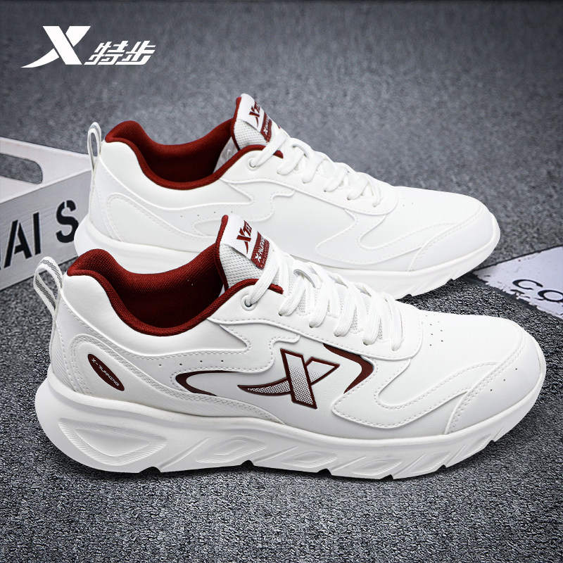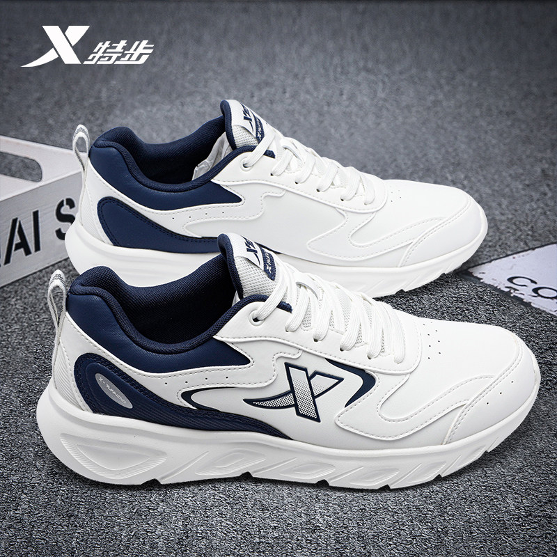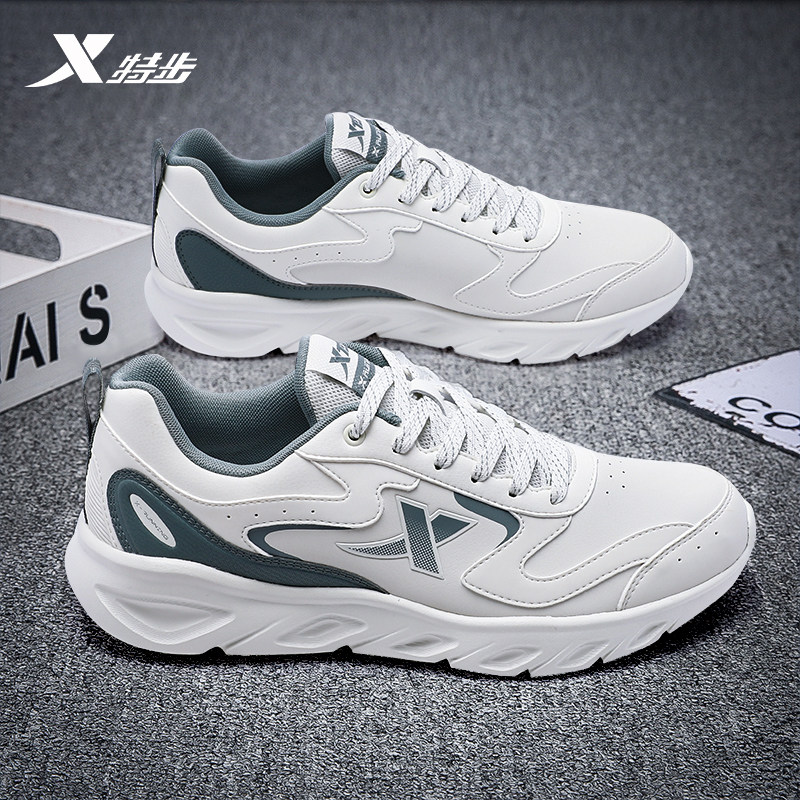 特步男鞋秋冬运动鞋2026休闲鞋轻便软底皮面防水百搭跑步鞋子男款