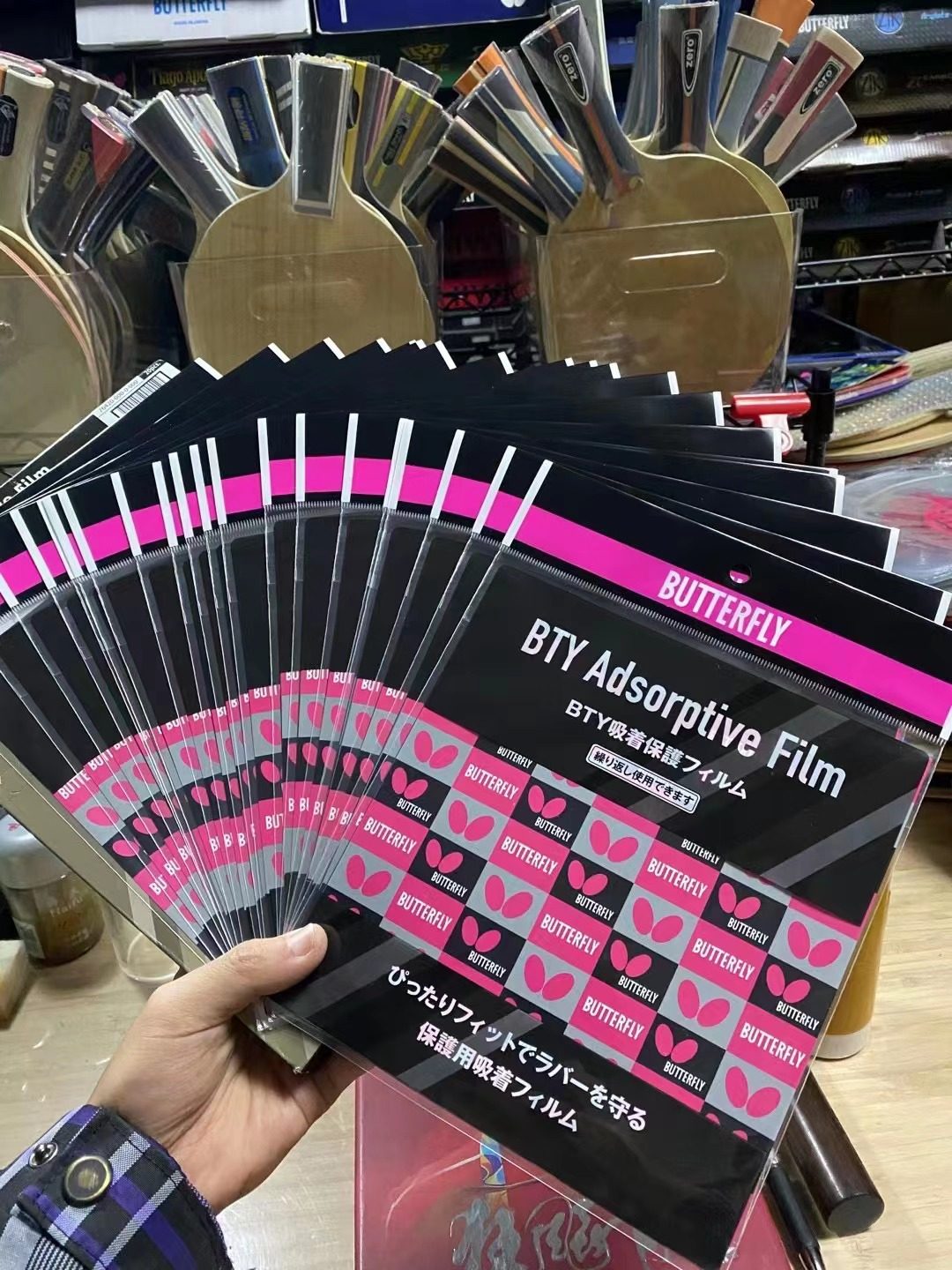 推荐日本原装正品Butterfly蝴蝶乒乓球拍胶皮涩性粘性保护膜贴膜