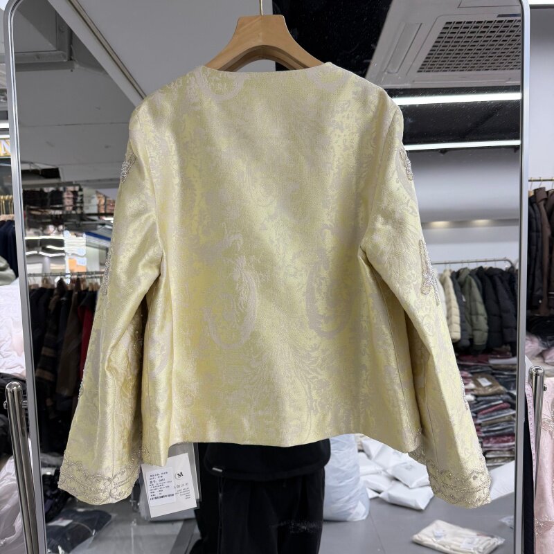 2026年春装新款流行女装新中式外套蝴蝶钉珠缎面提花宽松显瘦国风