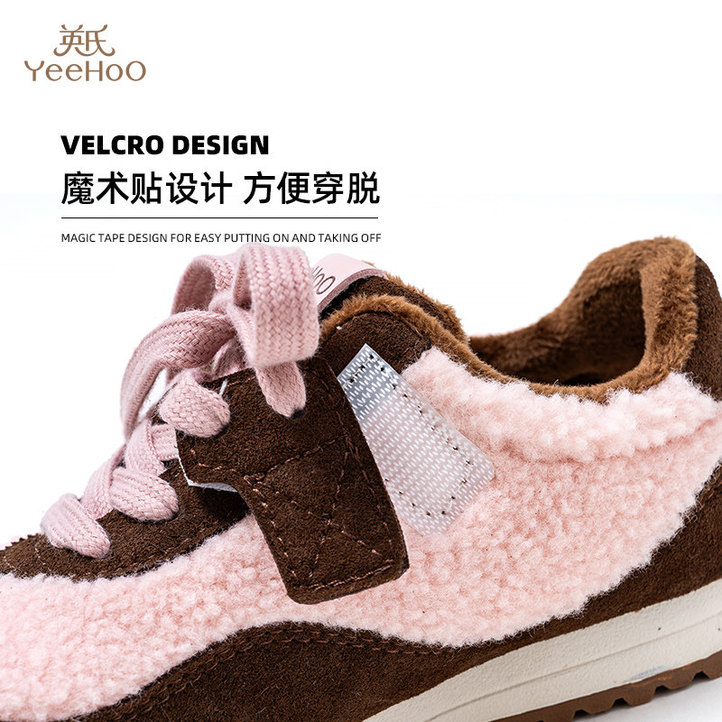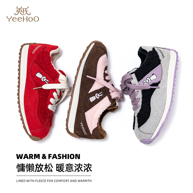 英氏童鞋新年限定冬季新款女童加绒保暖运动鞋儿童防滑软底运动鞋