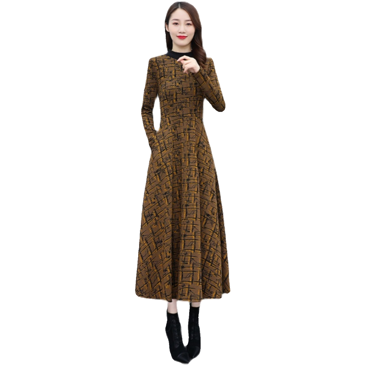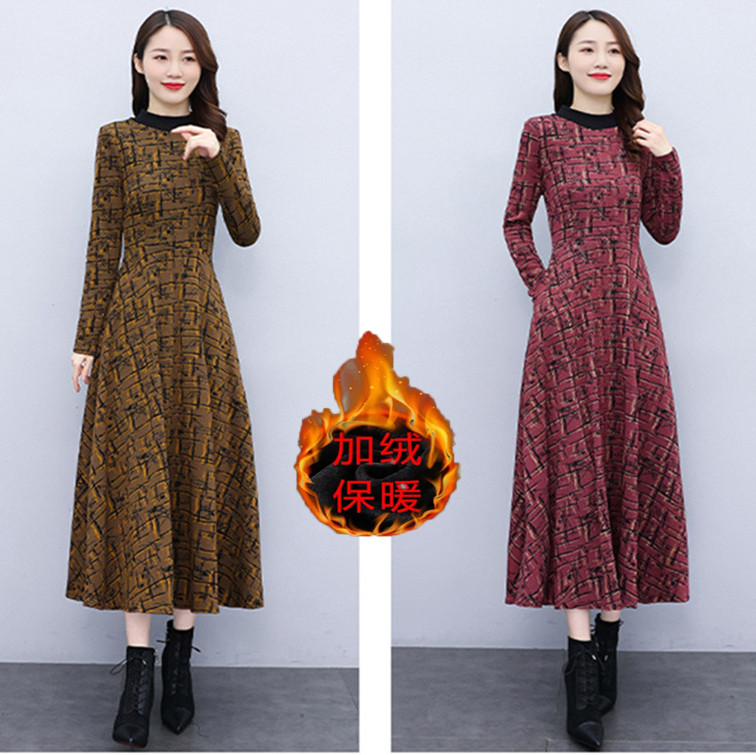 加绒加厚连衣裙秋冬新款高端女装洋气妈妈装长款裙子防寒气质冬裙