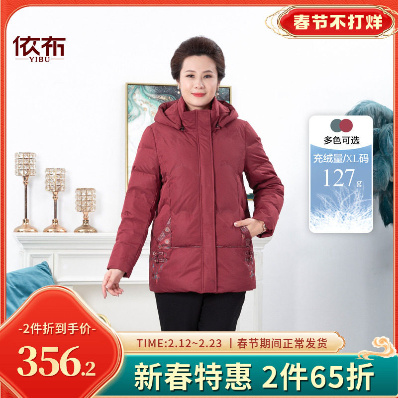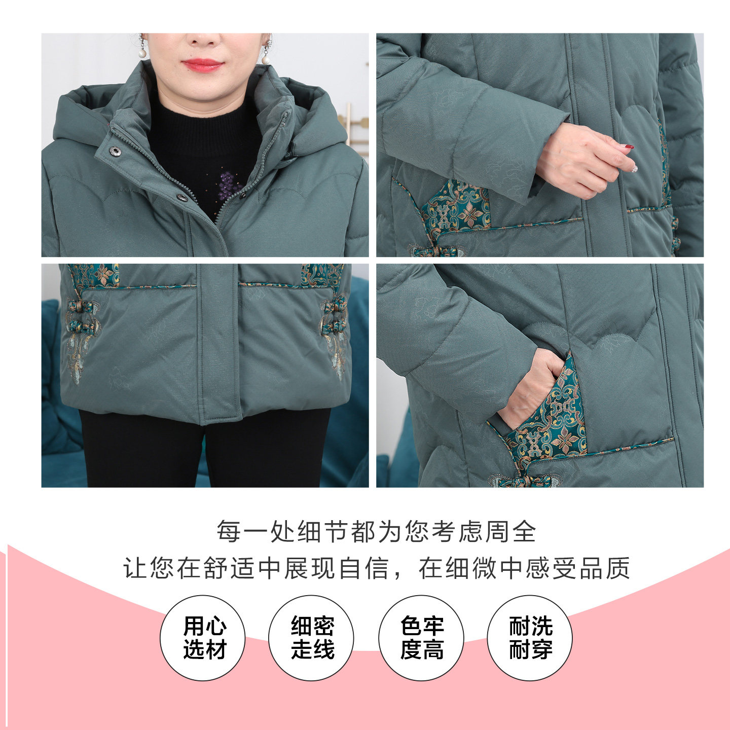 依佈妈妈装2025冬装新款羽绒服中老年女士中长款国风加厚保暖外套