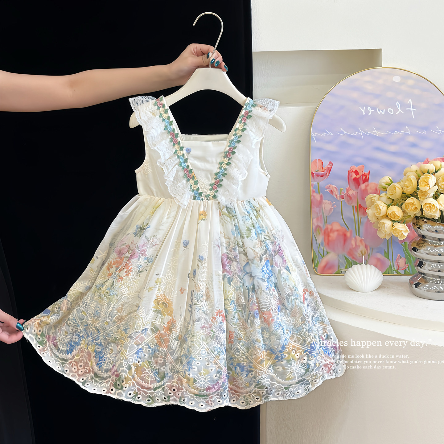 女童连衣裙夏季2025新款女宝宝碎花公主裙洋气度假风森系吊带裙子