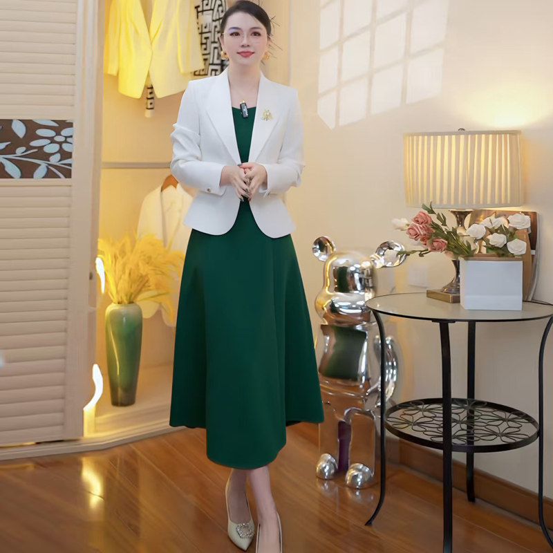 白色西装短外套女2025秋冬新款小个子高端长袖修身休闲西服连衣裙