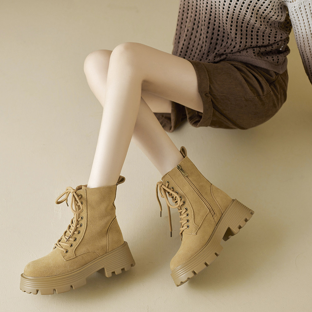 厚底棕色马丁靴女款2026新款超火爆款英伦风小个子增高靴子女短靴