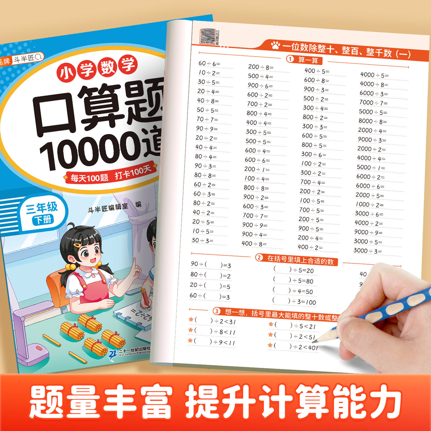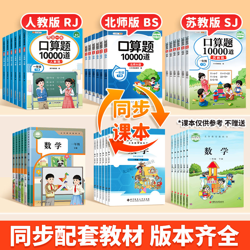 2026适用一年级下册数学口算天天练二年级上册三四五六年级大通关口算题卡10000道每天一练小学数学专项竖式应用题计算题强化训练
