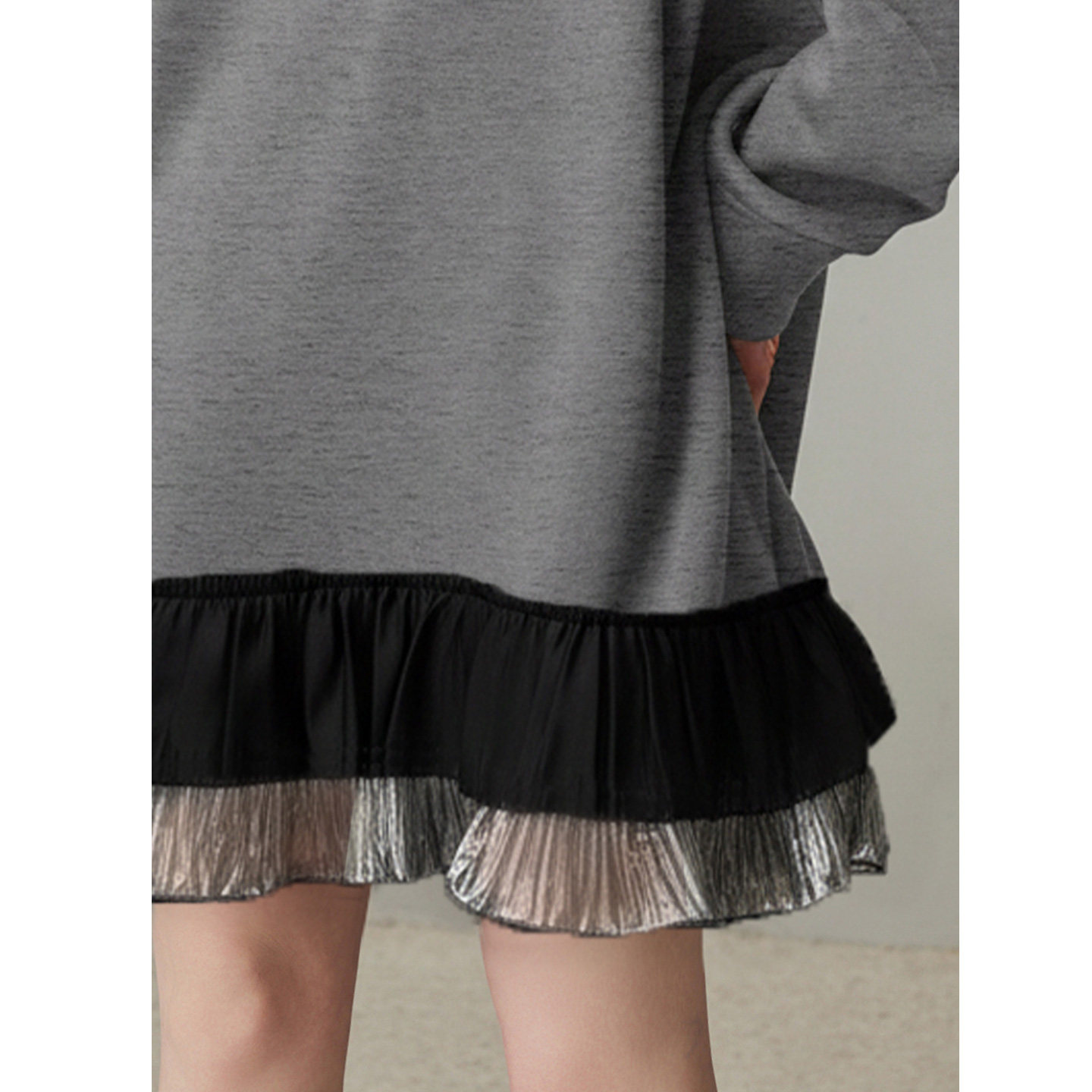 dfvc灰色休闲圆领卫衣裙女2026年春季新款小马刺绣宽松春装连衣裙