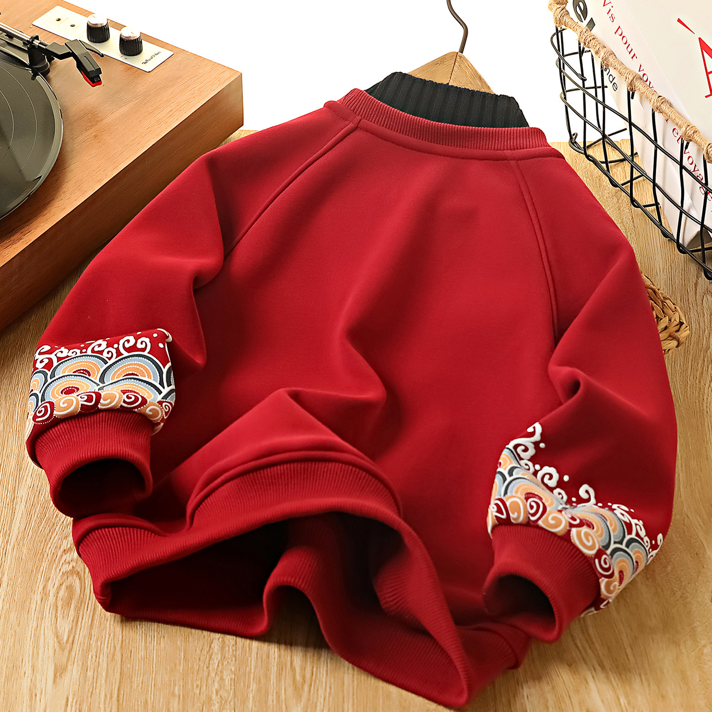 男童加绒卫衣秋冬2025新款拜年服儿童本命年红色衣服中大童上衣潮
