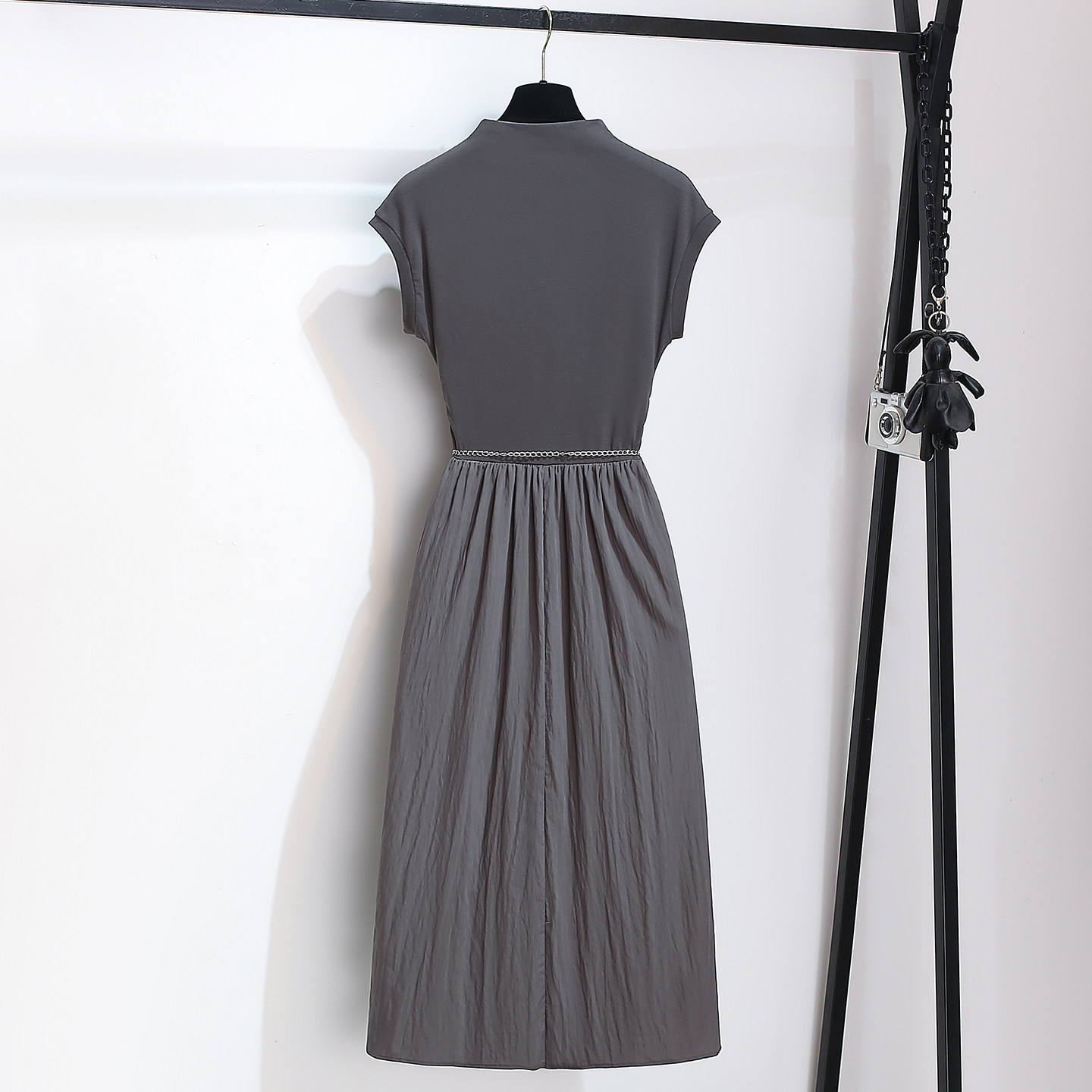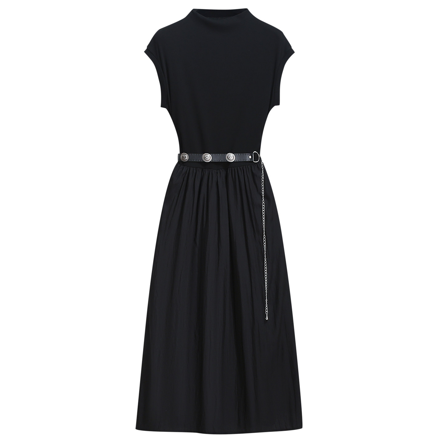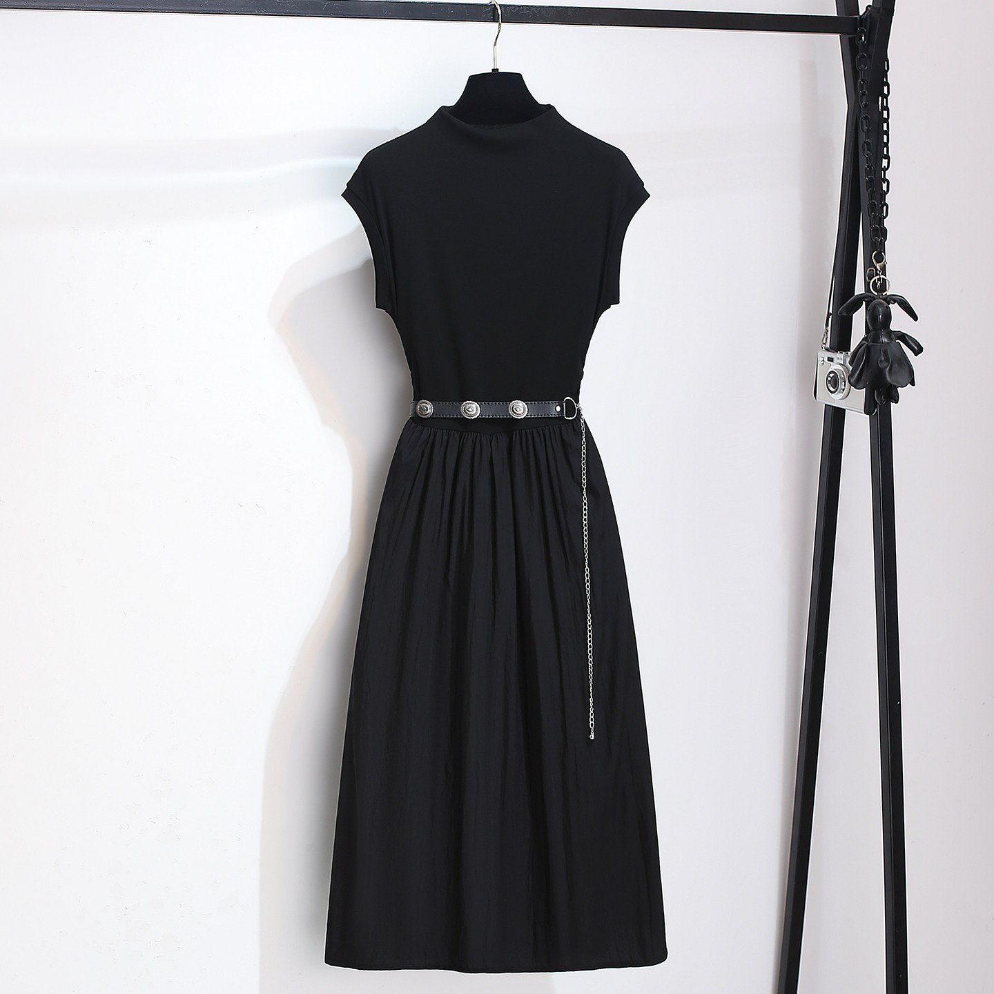 今年流行爆款立领无袖T恤连衣裙女2026早春装新款气质收腰a字长裙