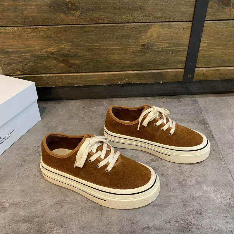 厚底磨砂牛皮板鞋女鞋2025新款春季百搭真皮透气软底不累脚休闲鞋