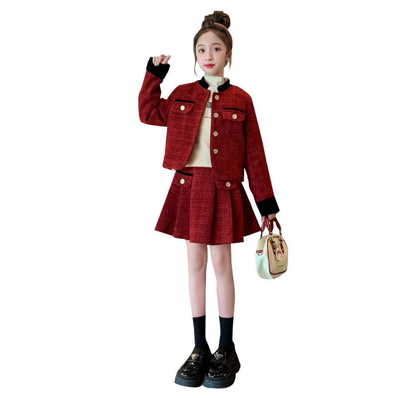 女童小香风套装秋冬款儿童红色连衣裙2025新年衣服冬装过年服裙子