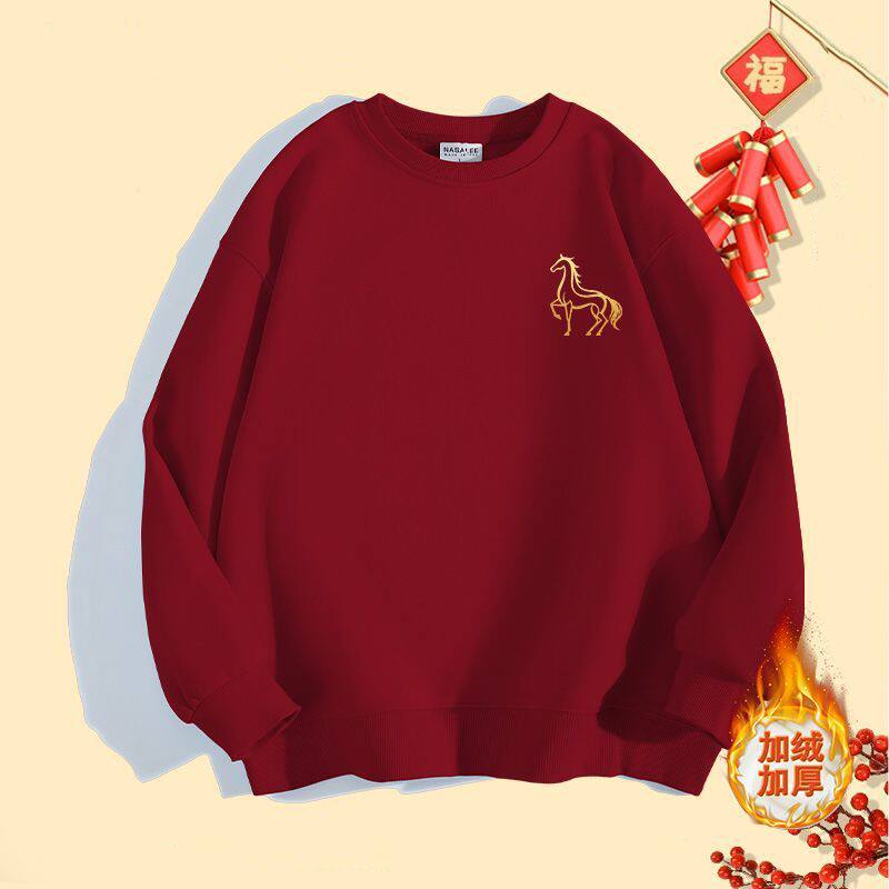 马年红色本命年卫衣男女款2026秋冬季过年喜庆衣服青少年圆领卫衣