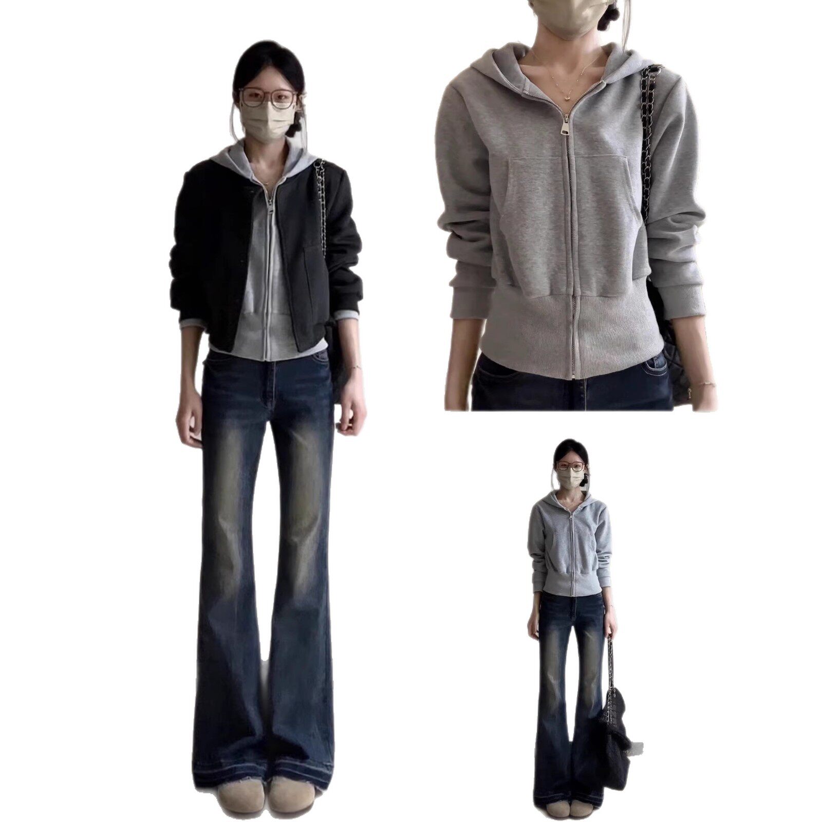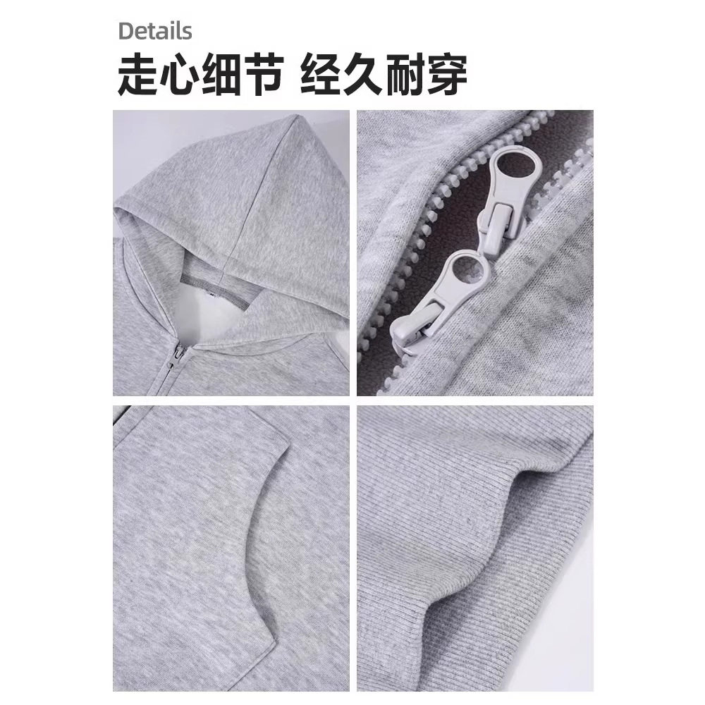 灰色宽松卫衣女初中生设计感小众2026新款韩版连帽双拉链正肩外套