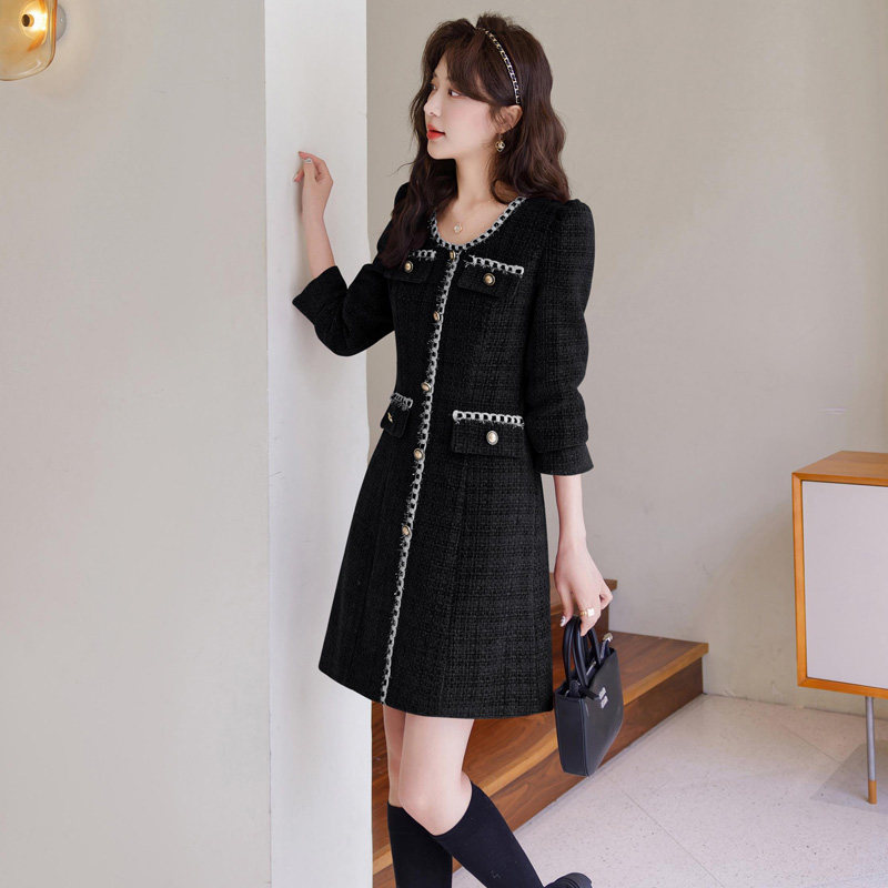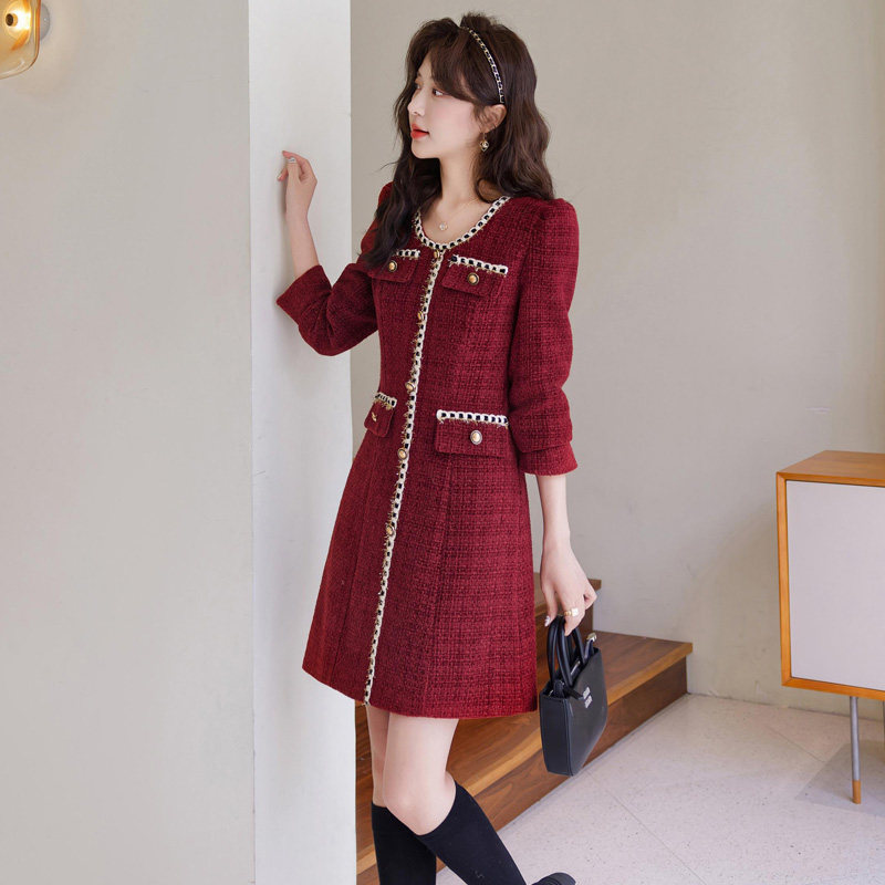 小香风轻奢高级感连衣裙女装2024新款春秋小个子高端气质红色裙子