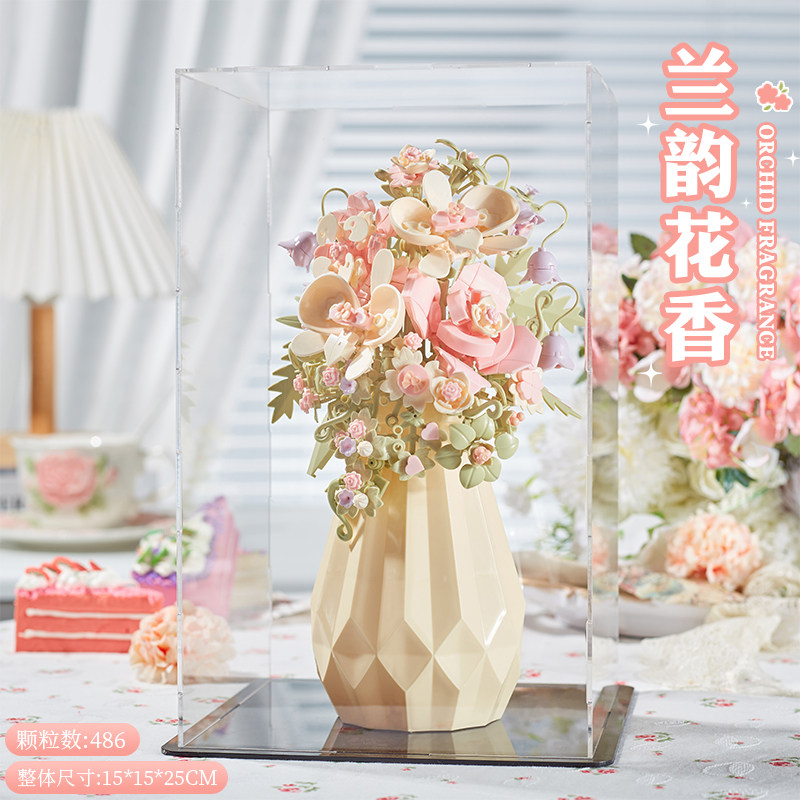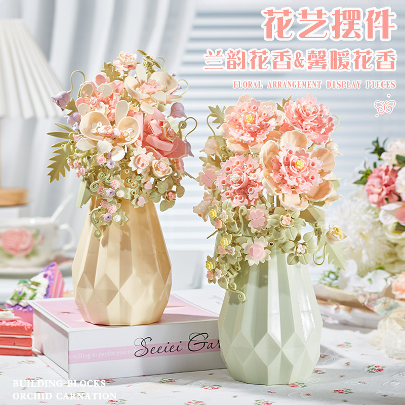 积木拼装永生花手工diy康乃馨花瓶高颜值创意摆件新年礼物送女生
