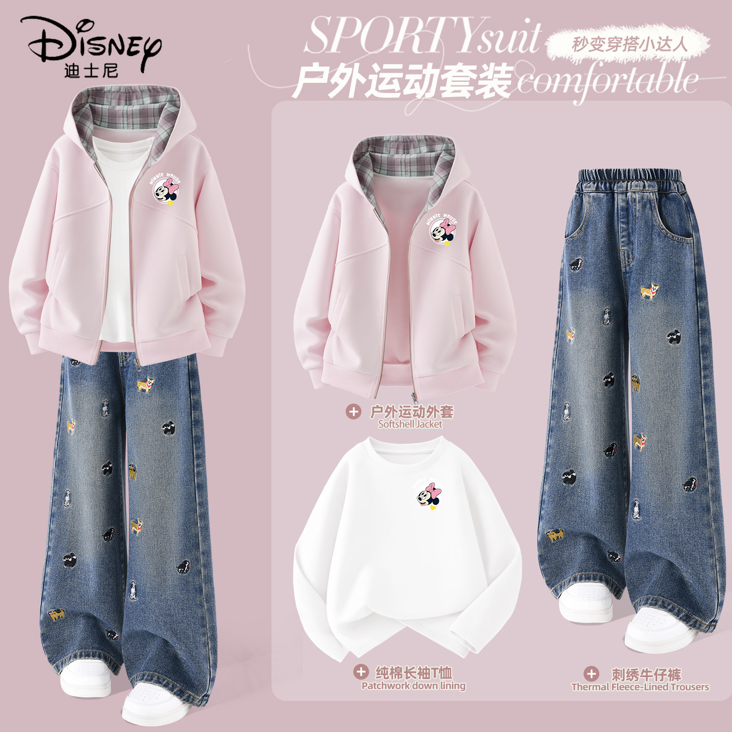 迪士尼女童春秋套装2026新款大童女装洋气时髦外套潮流儿童春装女