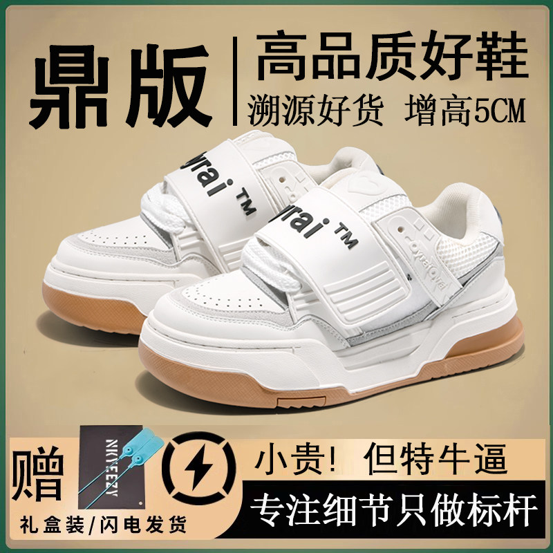 面包鞋男女款小白鞋厚底百搭魔术贴6CM隐形内增高运动休闲滑板鞋