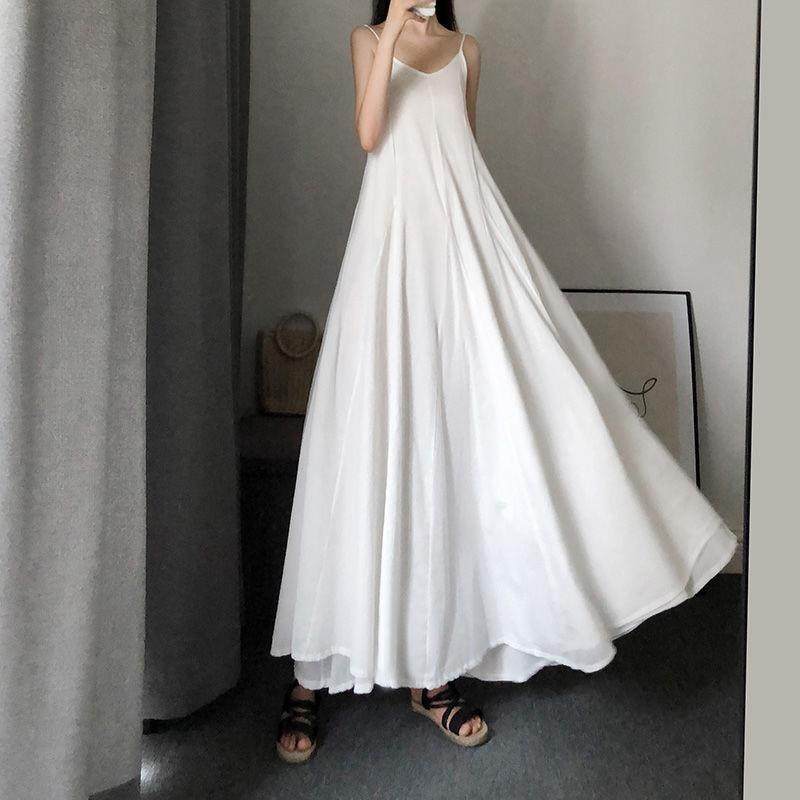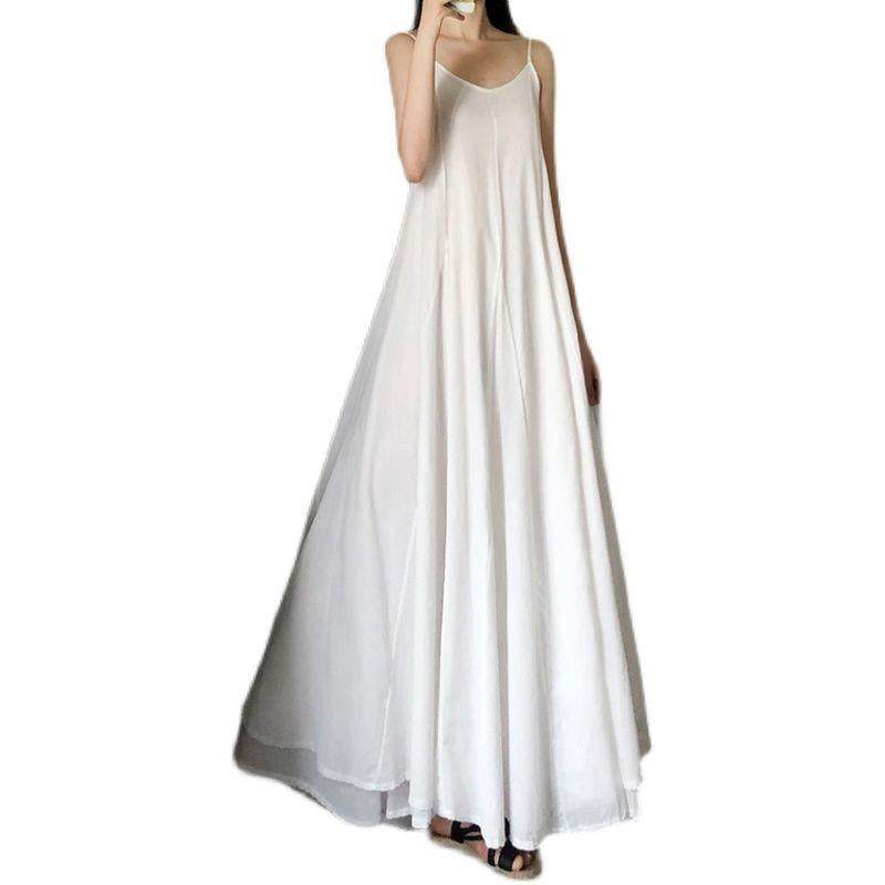 白色吊带裙2025女夏长款超仙到脚踝长裙a字大摆裙内搭打底连衣裙