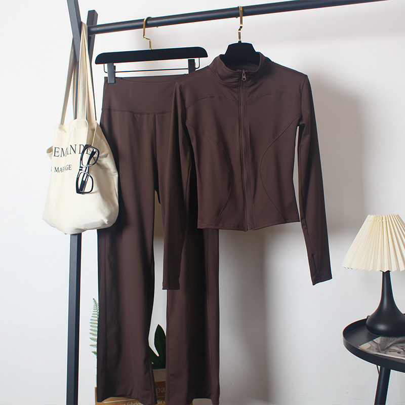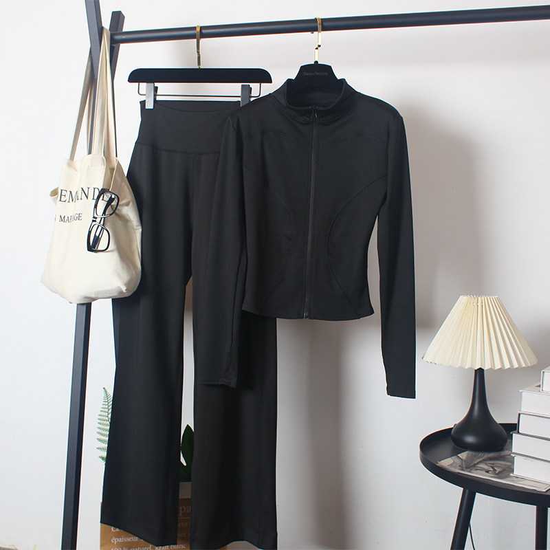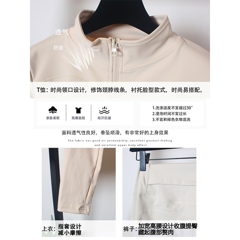 瑜伽服套装女春秋速干弹力宽松直筒长裤后腰口袋训练瘦身长袖上衣