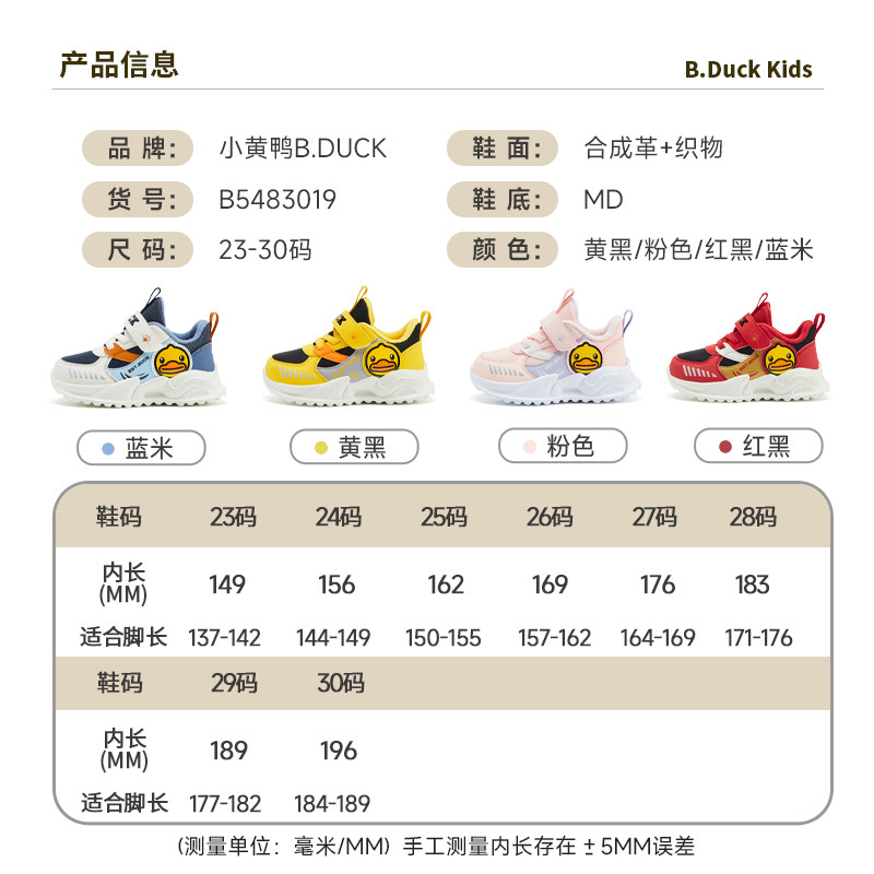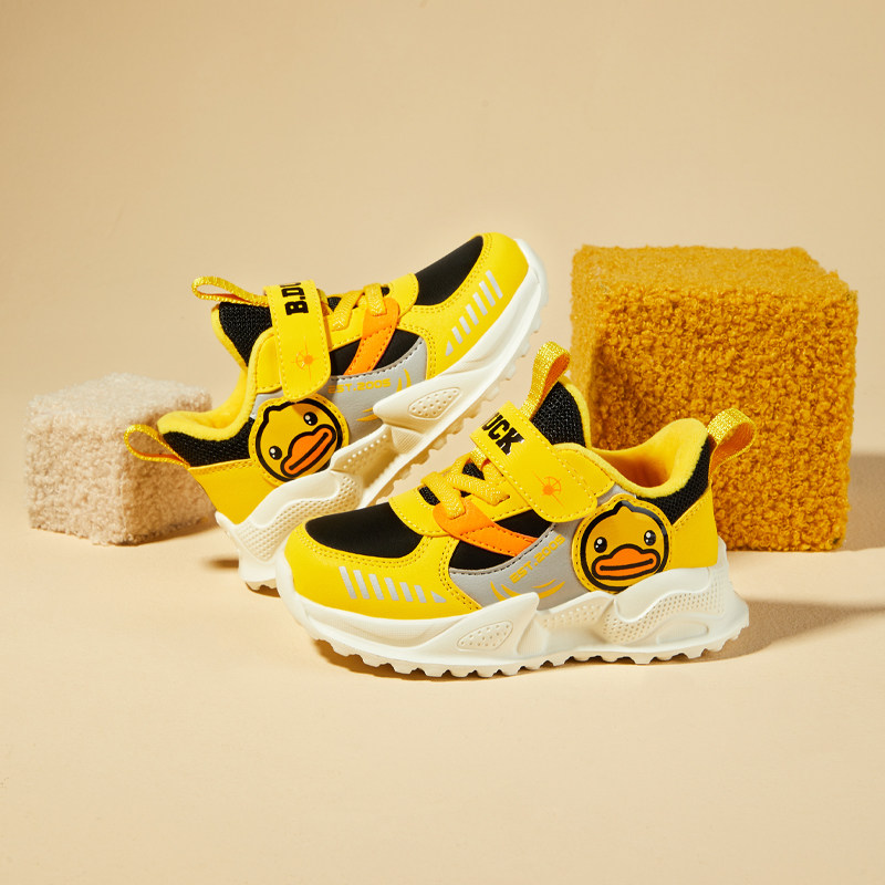 bduck小黄鸭童鞋儿童运动鞋女童冬天加绒宝宝二棉鞋保暖户外鞋子