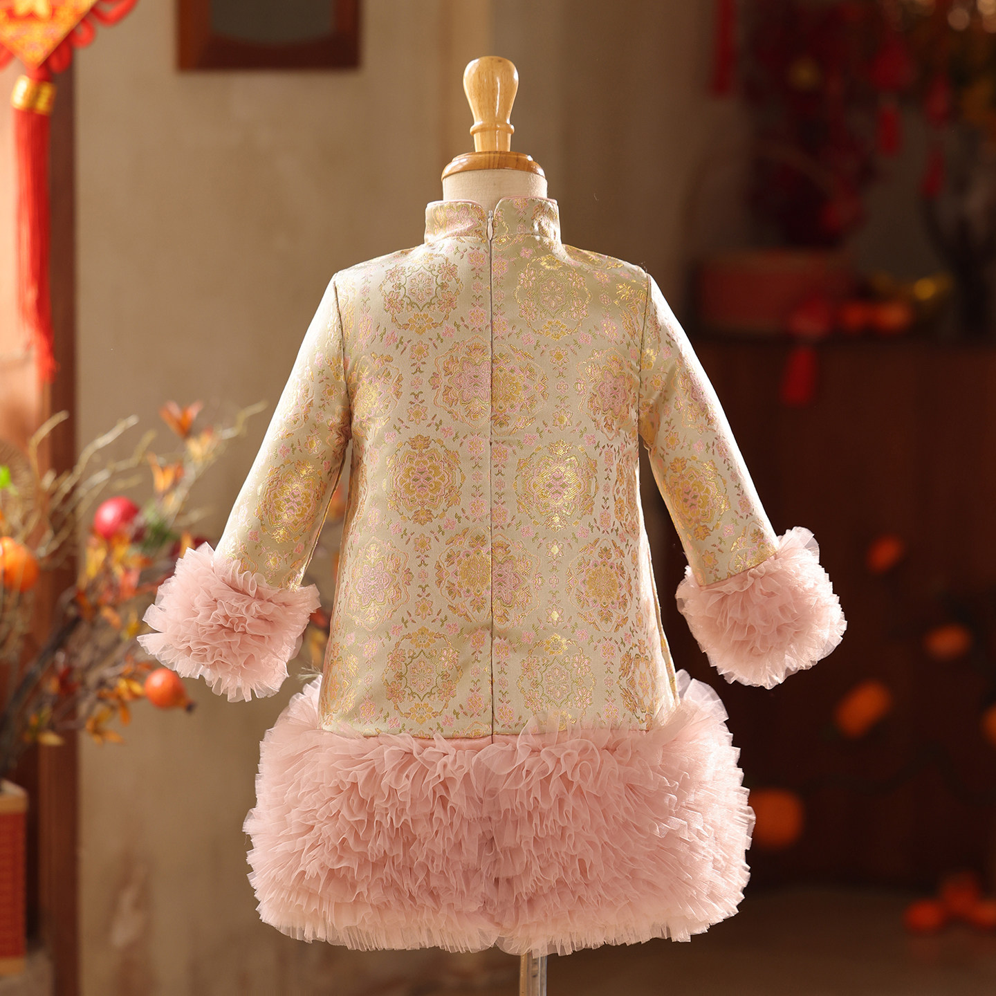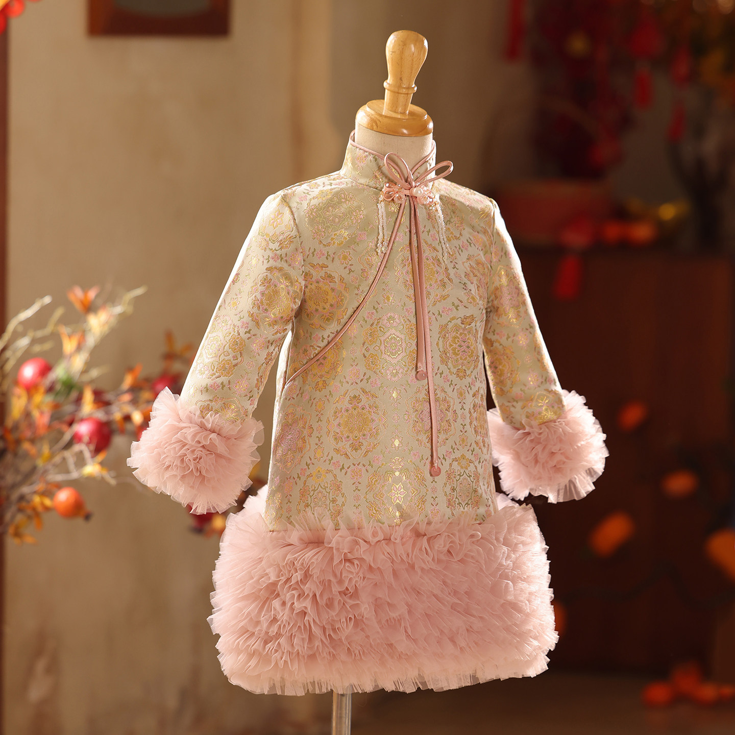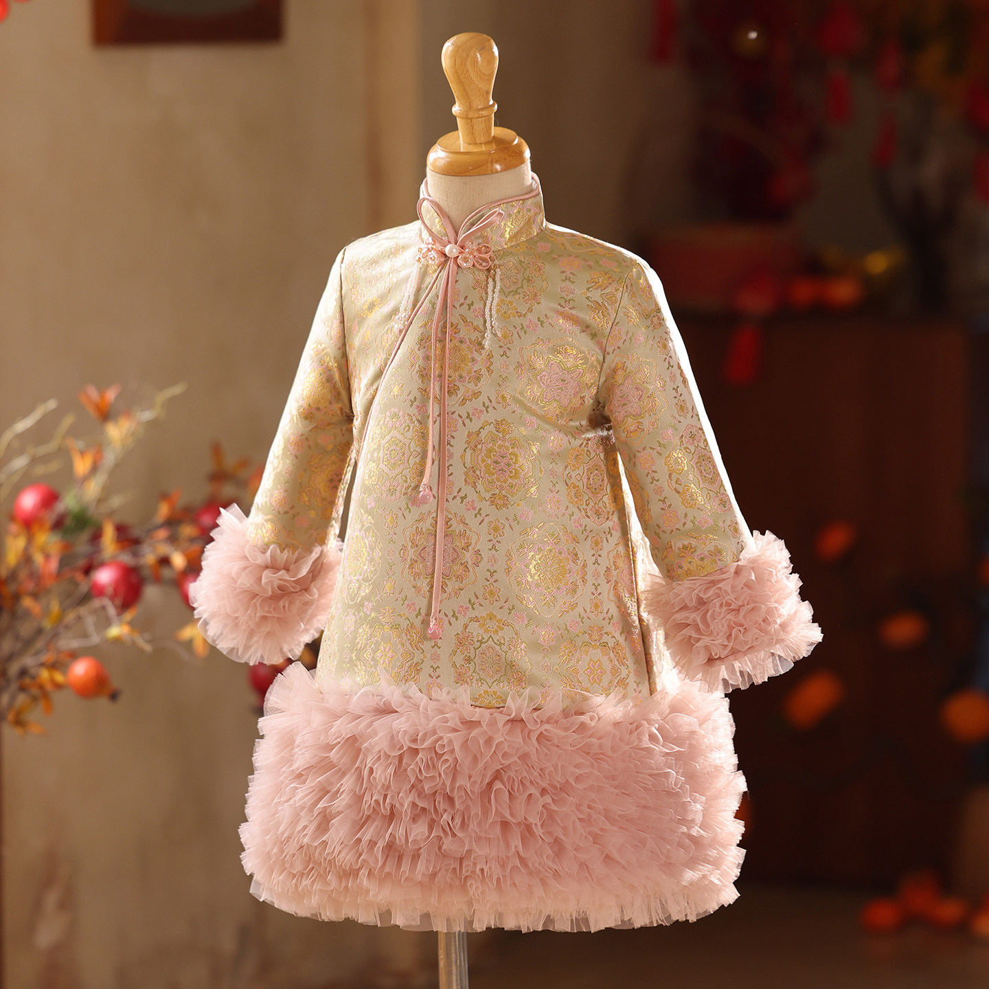新款粉色拜年服女童唐装加厚旗袍连衣裙中式儿童过年喜庆礼服冬装