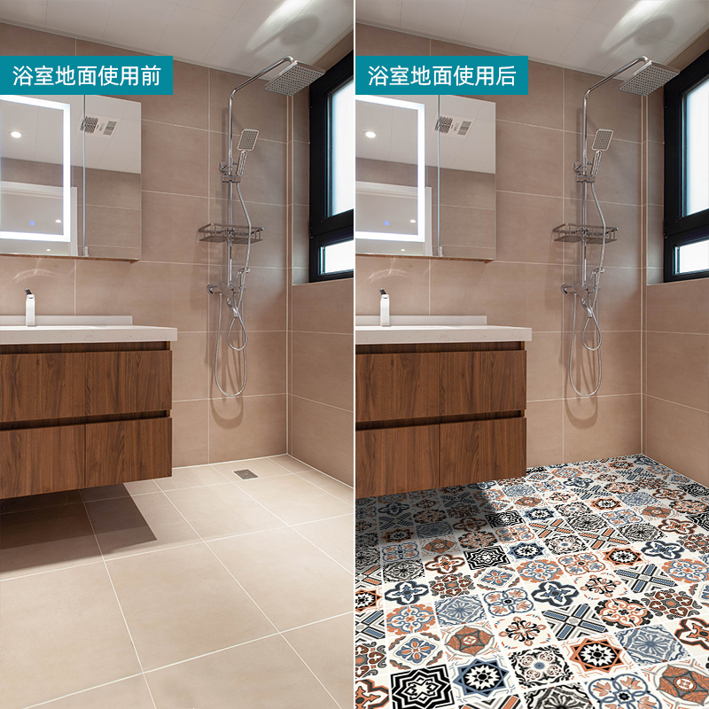 厨房地板贴纸卫生间防水防滑浴室加厚自粘PVC宿舍瓷砖地面翻新贴