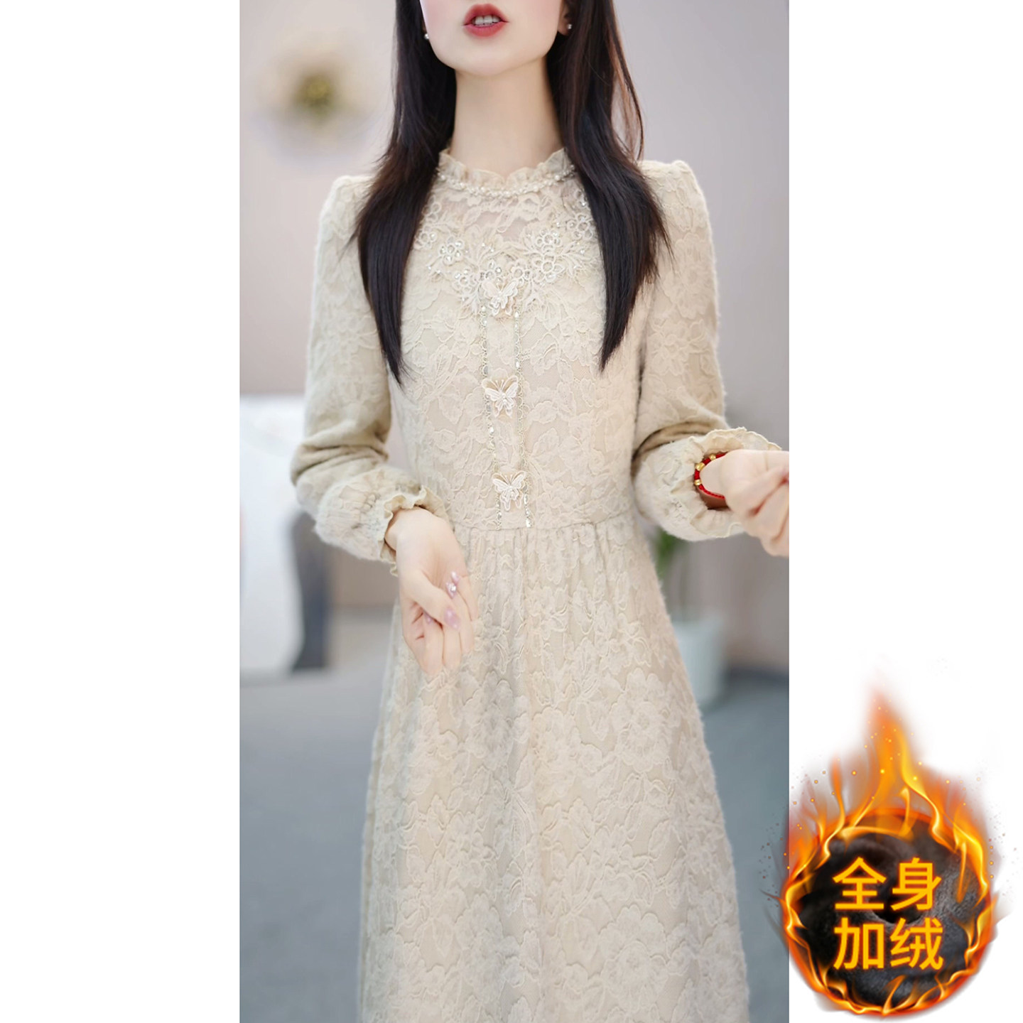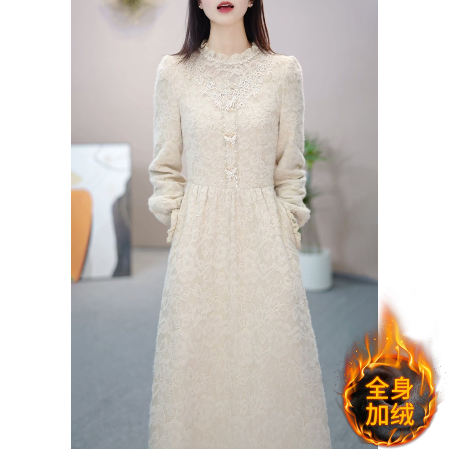 加绒加厚长袖连衣裙女2025新款秋冬季高端精致妈妈时尚配大衣裙子