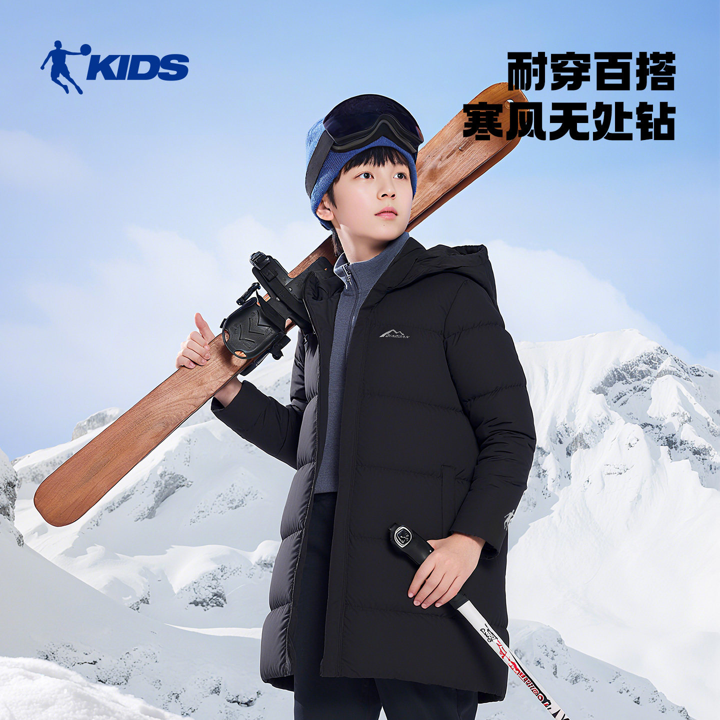 乔丹儿童男童羽绒服中长款2025冬季新款男童舒适保暖五防加厚外套