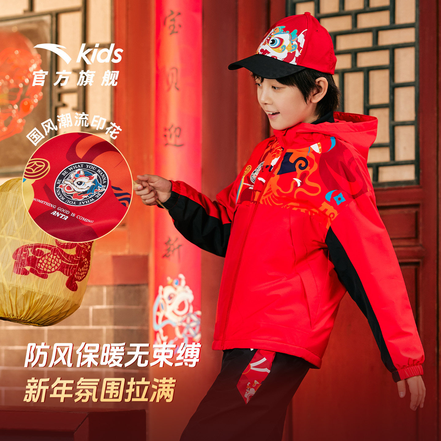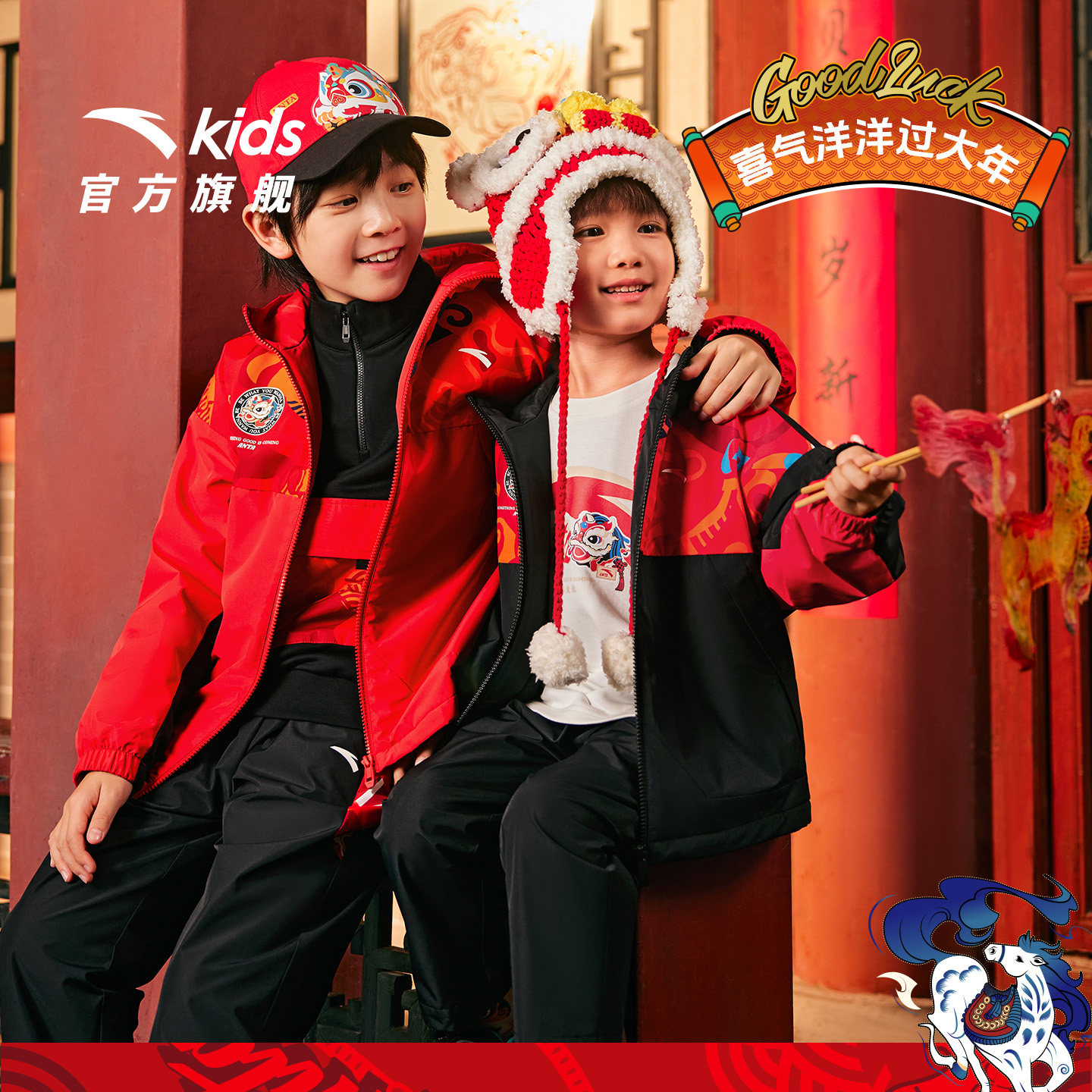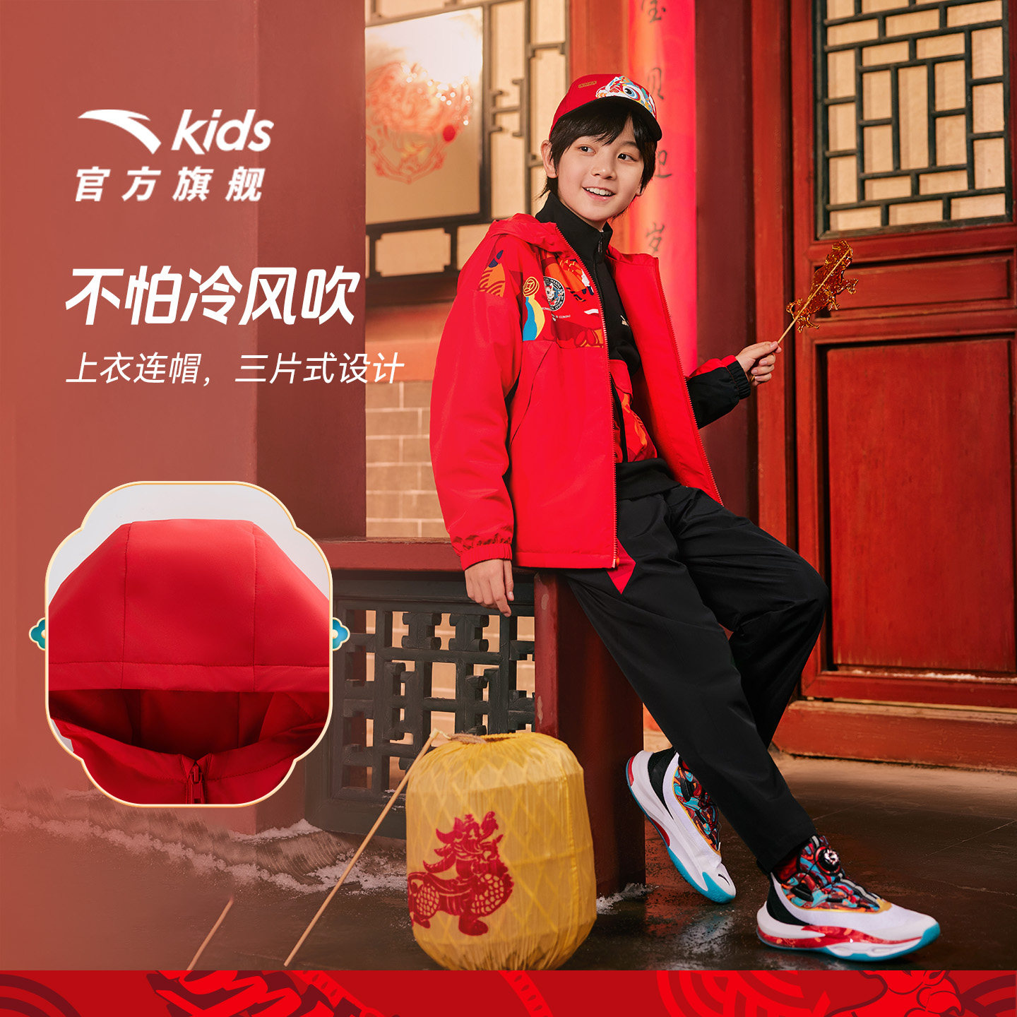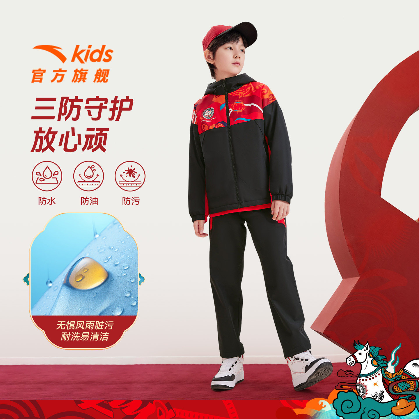 【马年红色新年】安踏儿童套装男童加绒外套套装2026新款拜年衣服