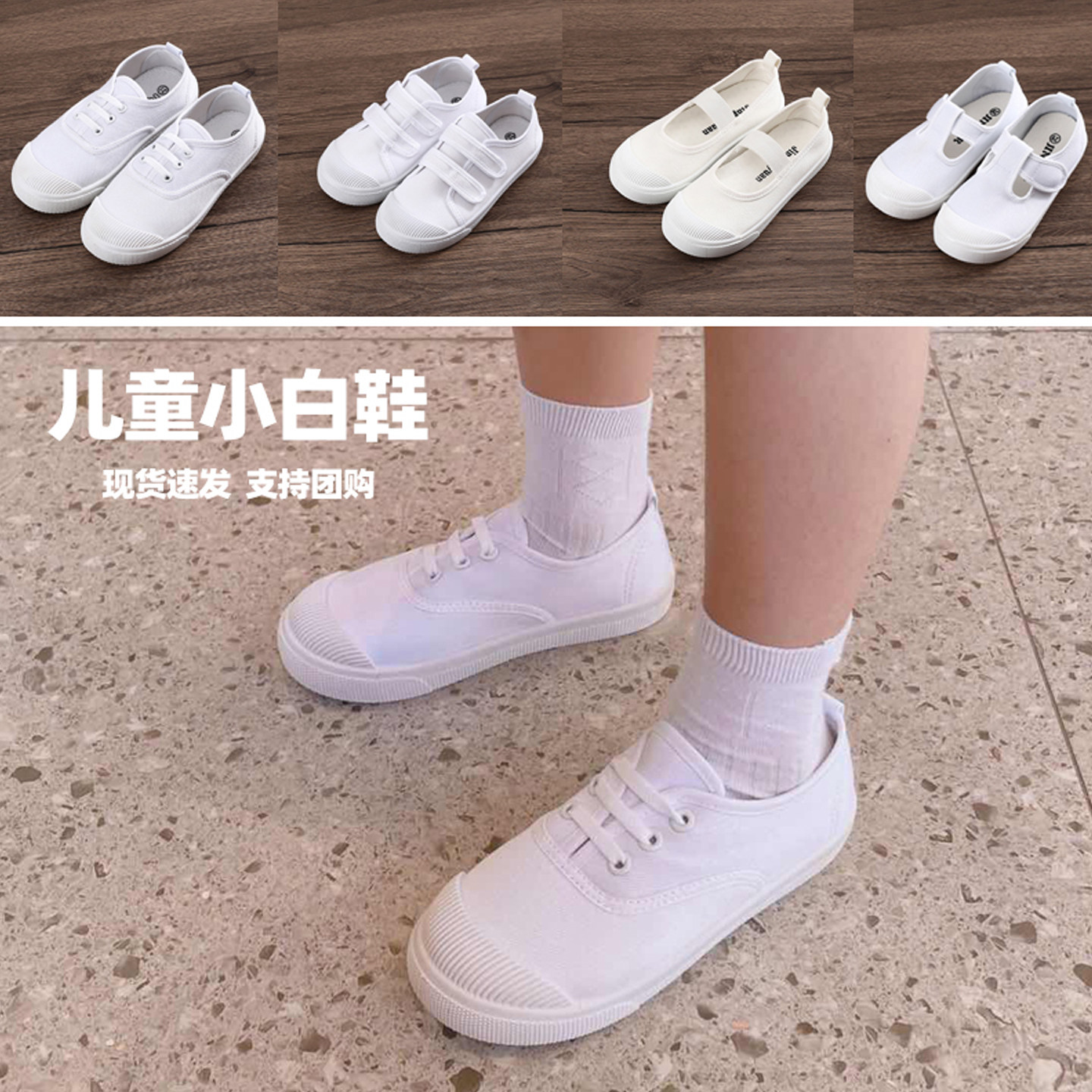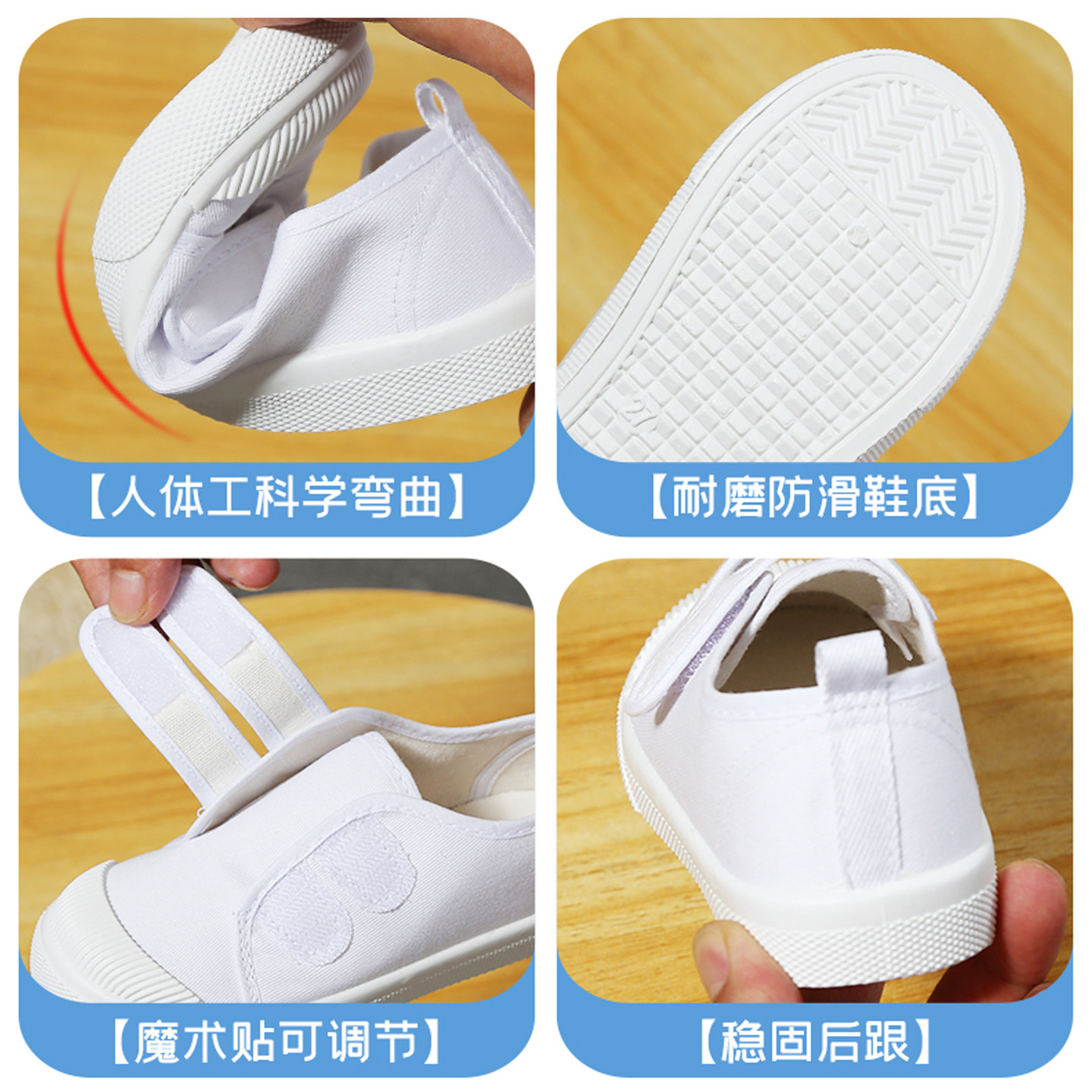 儿童小白鞋女童男童帆布鞋白色幼儿园室内学生球鞋表演演出鞋防滑