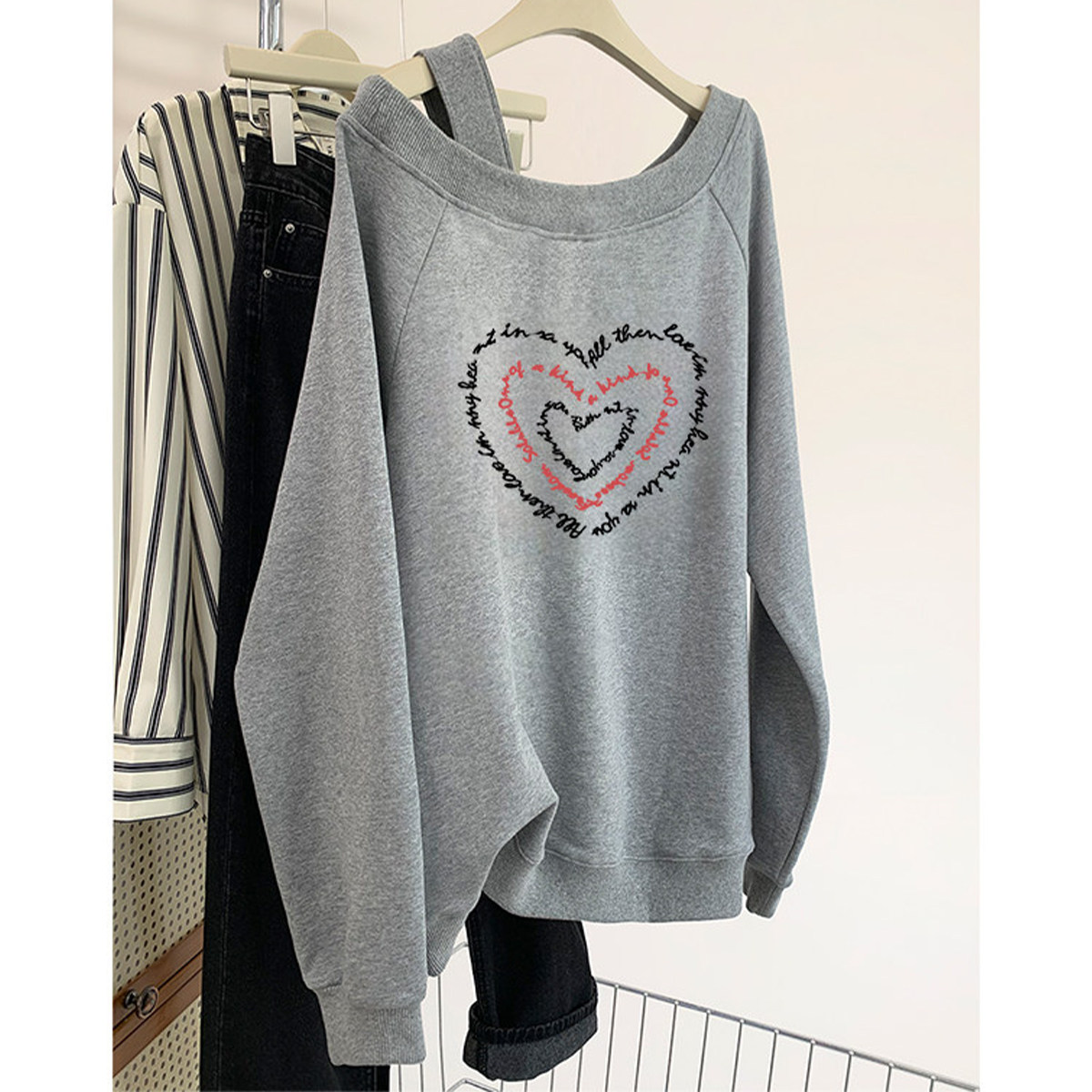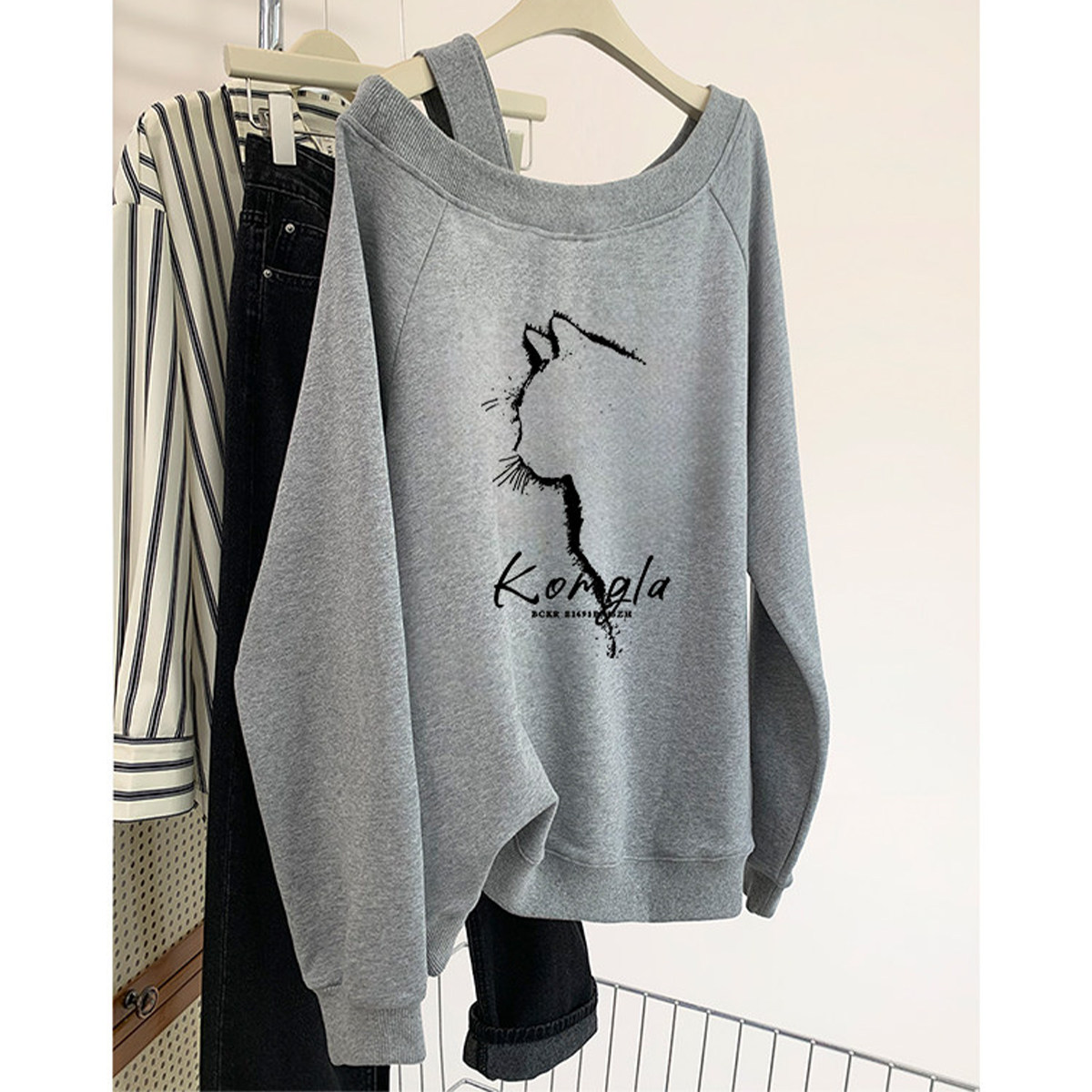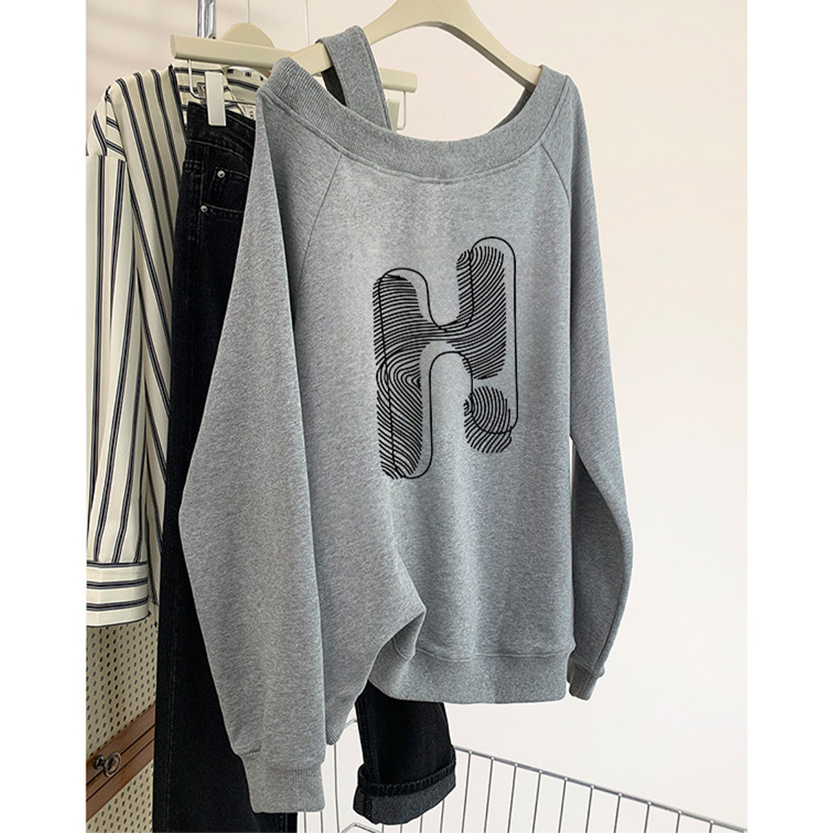 新品大码美式露肩卫衣女款小个子胖mm宽松高级感斜肩长袖显瘦上衣