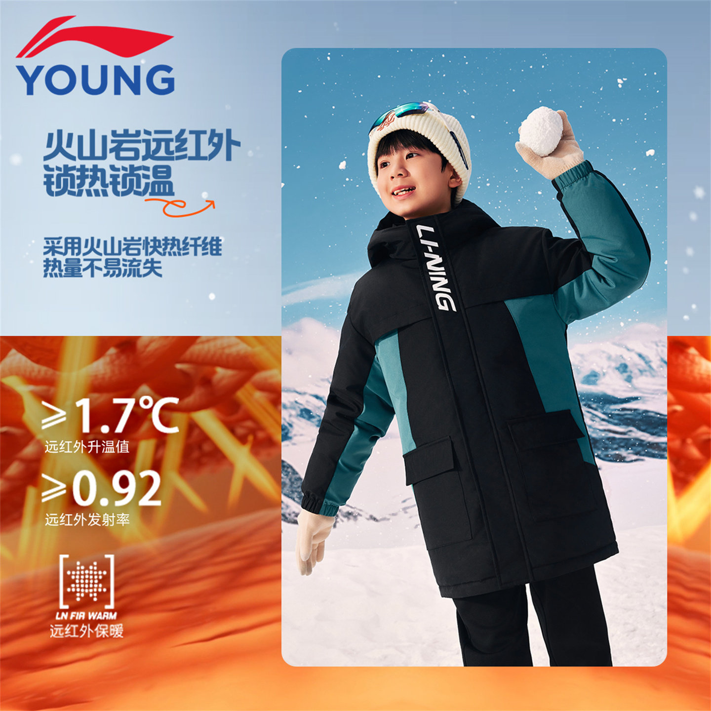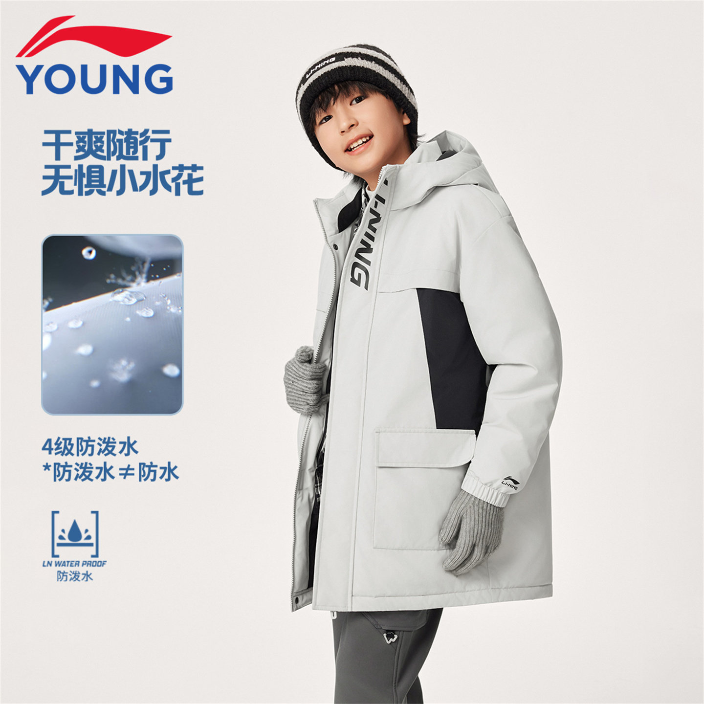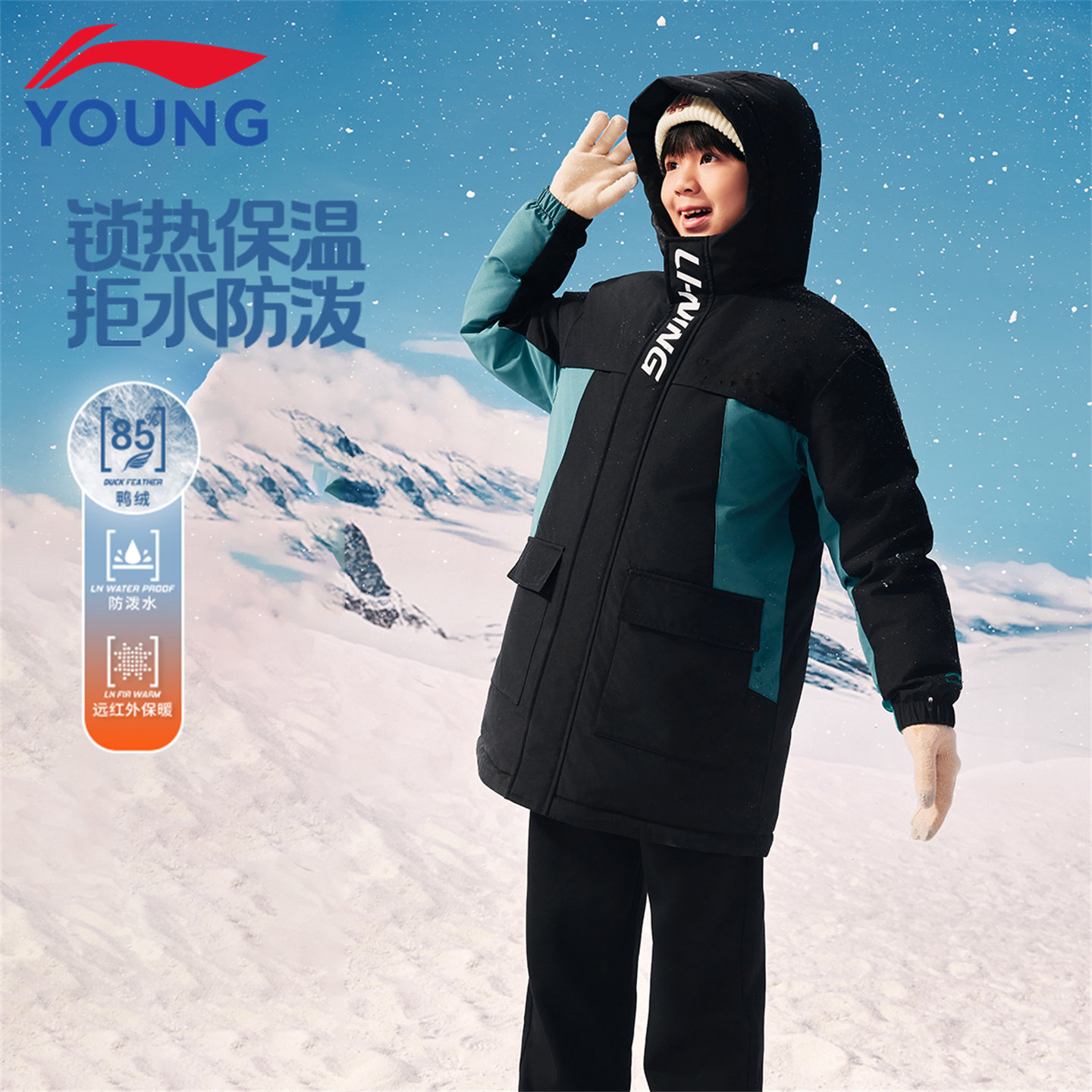 李宁儿童羽绒服男大童2025冬季新款加厚保暖初中生中长款连帽外套